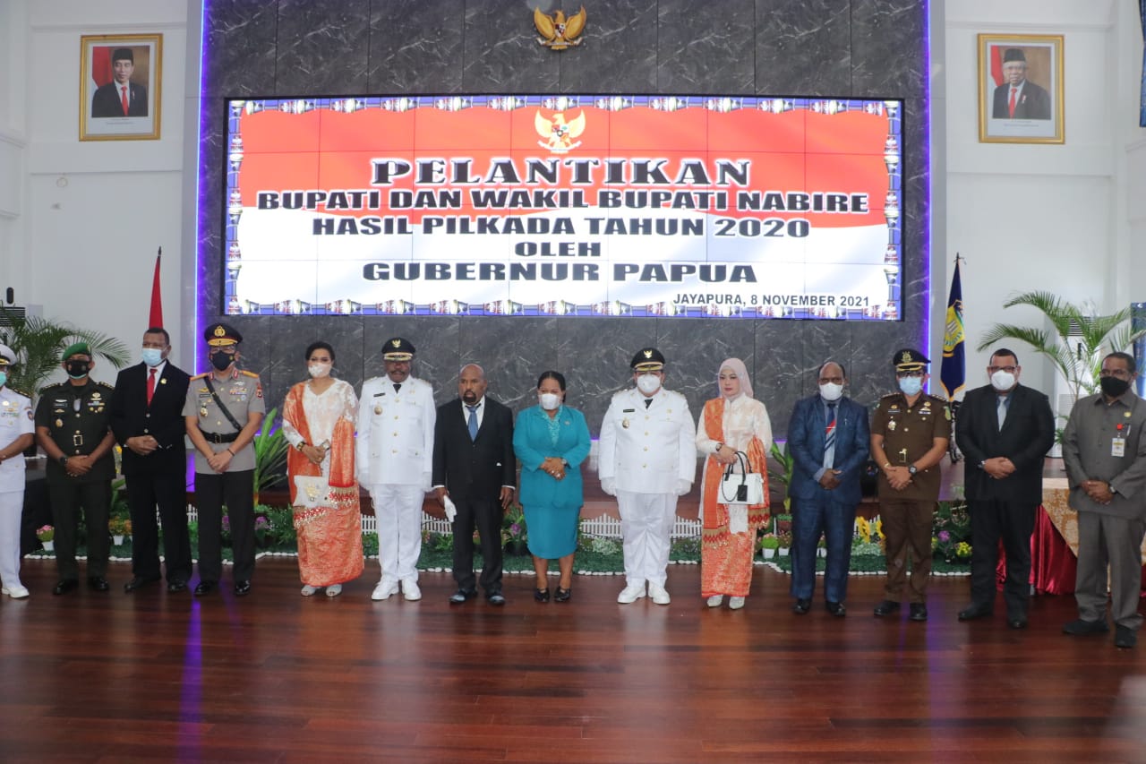 Pada hari Senin tanggal 08 November 2021 pukul 10.56 s/d 12.30 WIT, bertempat di Aula Lukmen Hall, Gedung Negara, Jl. Trikora Dok V Atas, Kelurahan Trikora, Distrik Jayapura Utara, Kota Jayapura telah dilaksanakan Pelantikan Bupati dan Wakil Bupati Kabupaten Nabire hasil PILKADA Tahun 2020 oleh Gubernur Provinsi Papua LUKAS ENEMBE, S.IP.,MH.