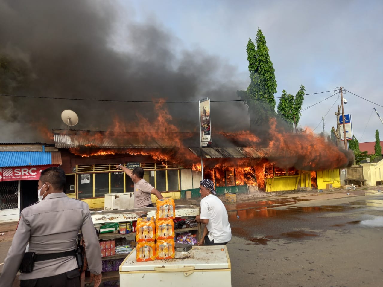 News.Busurnabire.id _Merauke – Pada hari Senin tanggal 24 Januari 2022 pukul 07.00 WIT bertempat di jalan Brawijaya kabupaten Merauke, telah terjadi kebakaran 3 (Tiga) Unit Kios dan 1 (satu) Warung Makan di samping kanan Mapolres Merauke.