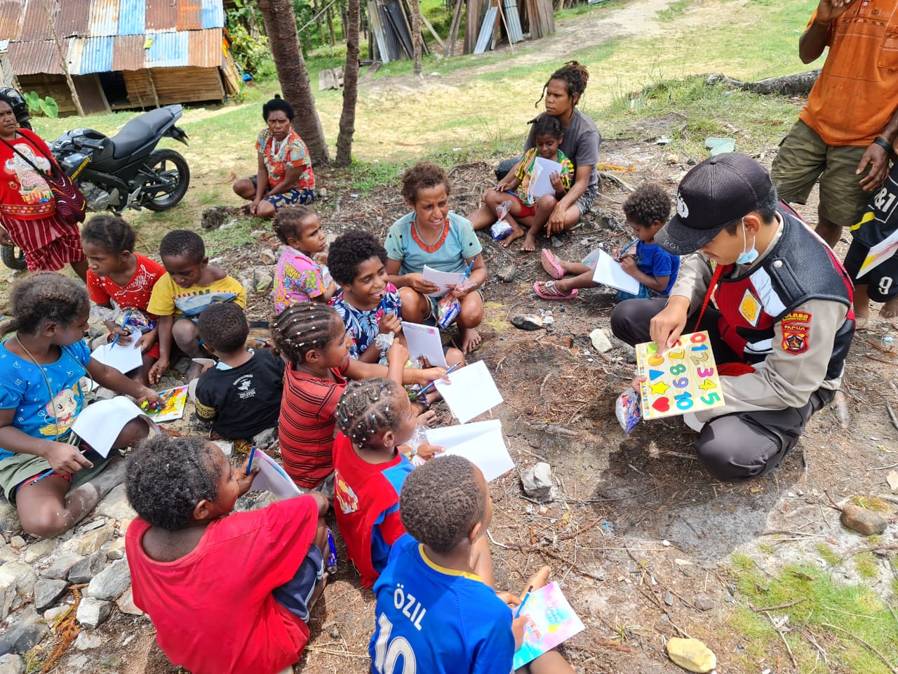 Kasatgas Humas Ops Damai Cartenz Kombes Pol Drs. Ahmad Musthofa Kamal SH saat hubungi menyampaikan, kegiatan pembelajaran yang dilakukan oleh Binmas Noken ini sangat baik dimana membantu para guru dalam membina anak-anak.