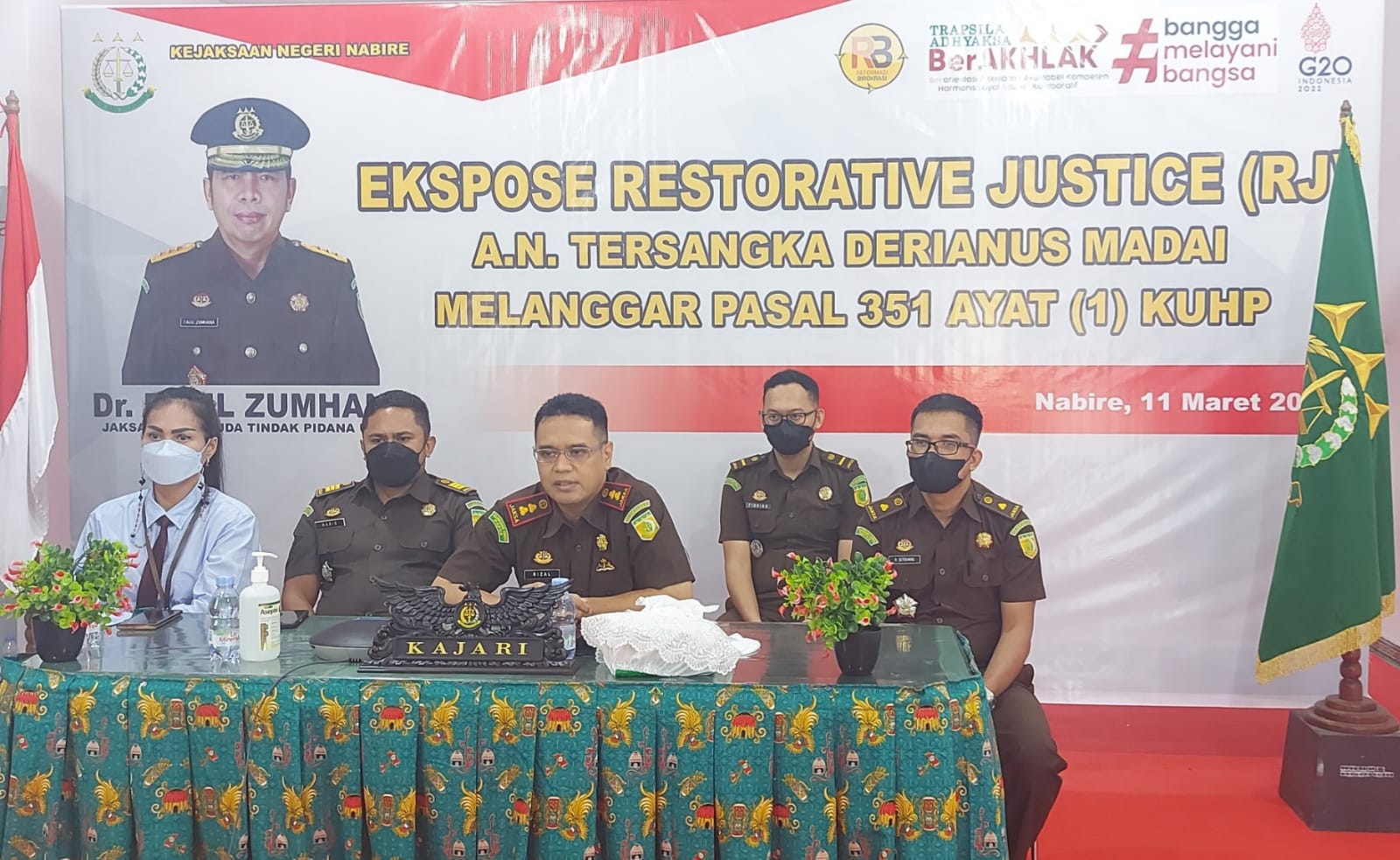 Kepala Kejaksaan Negeri Nabire ( Kajari Nabire ) Muhammad Rizal, SH.,MH. Didampingi jajarannya melaksanakan gelar penyelesaian perkara berdasarkan Restorative Justice. Bertempat di kantor Kejaksaan Negeri Nabire, Jumat (11/03/2022).