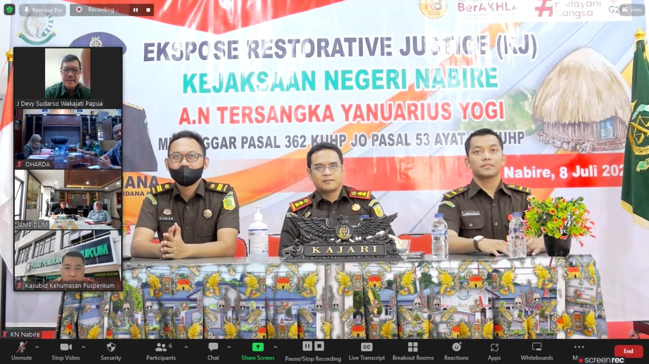 NEWS.BUSURNABIRE.ID – NABIRE .Hari ini, Jum’at 08 Juli 2022, Kepala Kejaksaan Negeri Nabire, Muhammad Rizal, S.H., M.H., kembali melakukan ekspose permohonan restorative justice kepada Jaksa Agung Muda Tindak Pidana Umum, Bapak Dr. Fadil Zumhana, dalam perkara tindak pidana Percobaan Pencurian yang dilakukan oleh Tersangka YY, melanggar Pasal 362 KUHP jo Pasal 53 ayat (1) KUHP.