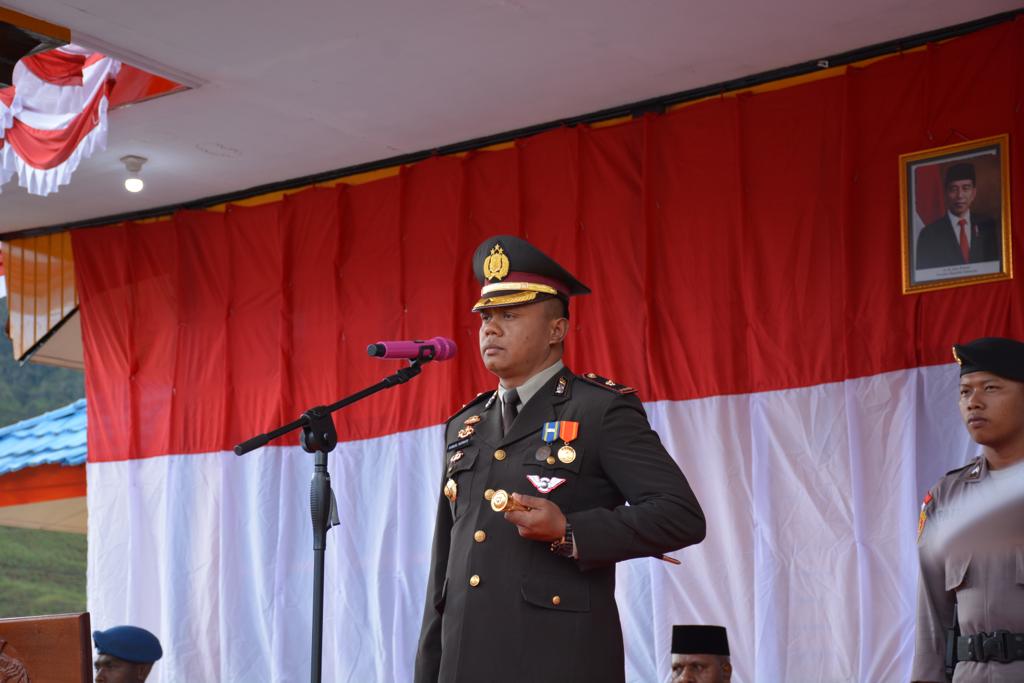 NEWS.BUSURNABIRE.ID _Dogiyai – Pelaksaan Upacara dalam rangka memperingati HUT RI ke 77 Kapolres Dogiyai Kompol Samuel D Tatiratu. S.I.K hadiri jalannya pelaksanaan upacara penurunan Bendera yang bertempat di Halaman Kantor Bupati Dogiyai telah berlangsung Upacara Penurunan Bendera Merah Putih / Aubade Hut Kemerdekaan RI yang ke -77 Tahun 2022 di Kabupaten Dogiyai (17-08-2022)