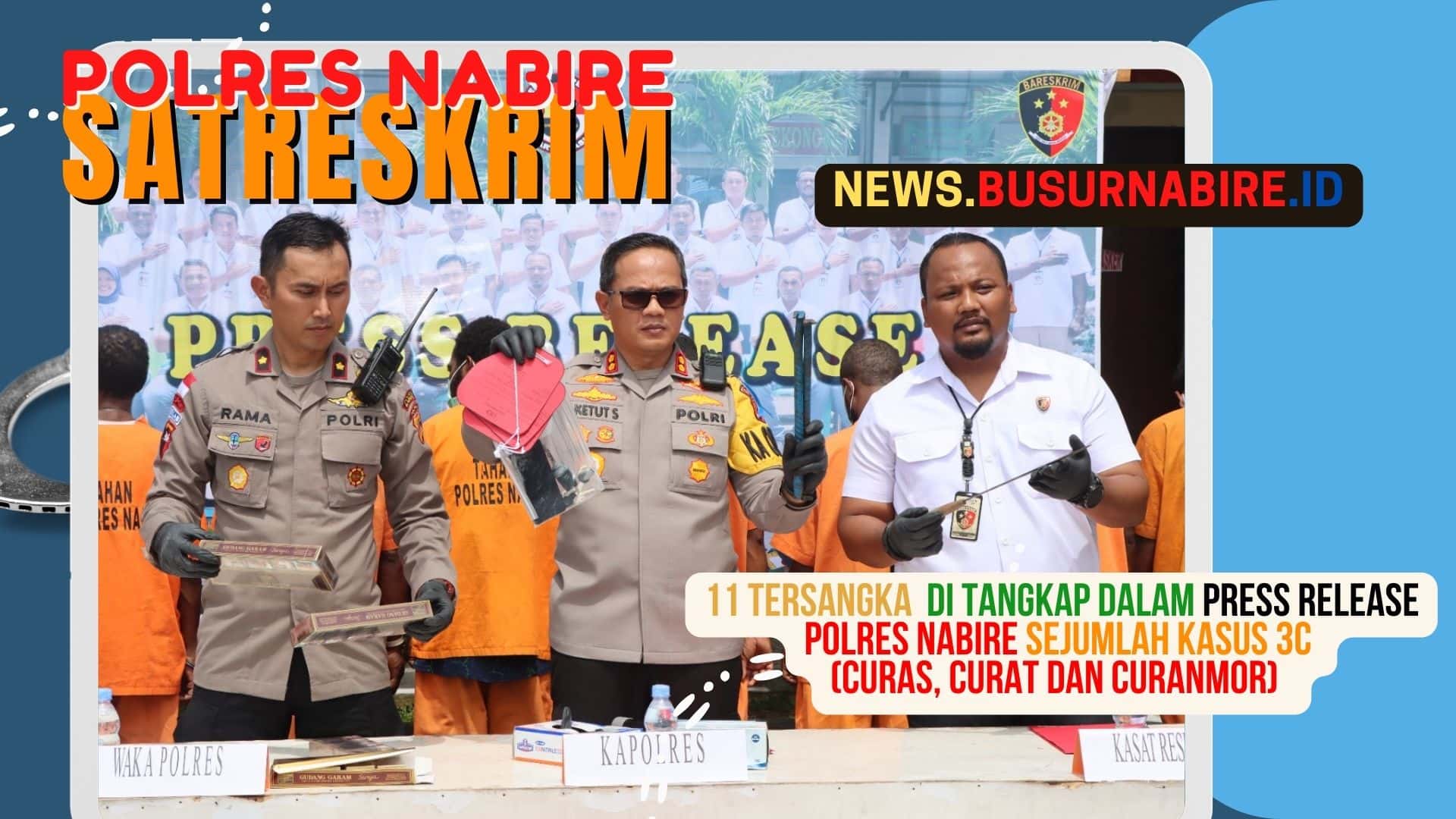 NEWS.BUSURNABIRE.ID -NABIRE. Dipimpin langsung Kapolres Nabire AKBP I Ketut Suarnaya. S.I.K.,SH didampingi Waka Polres Nabire Kompol Ramadhona, Kasat Reskrim AKP Akhmad Alfian, S.I.K., M.H yang dihadiri PS. Kasie Humas Polres Nabire Iptu Yaudi, S.Sos beserta personil Satuan Reserse Kriminal Polres Nabire .Melaksanakan press release tentang hasil ungkap kasus tindak pidana kasus 3C (Curas, Curat dan Curanmor) yang digelar di halaman Polres Nabire.Senin 06/02.2023.
