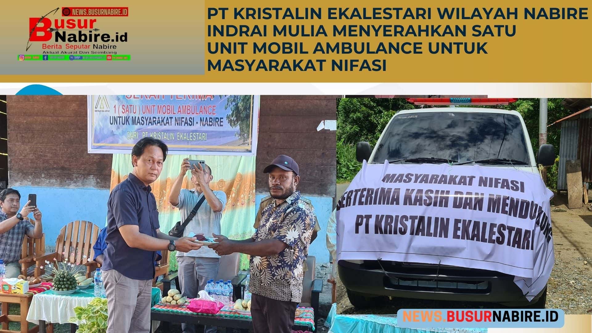 PT kristalin Ekalestari wilayah Nabire Indrai Mulia menyerahkan Satu Unit Mobil Ambulance untuk masyarakat Nifasi