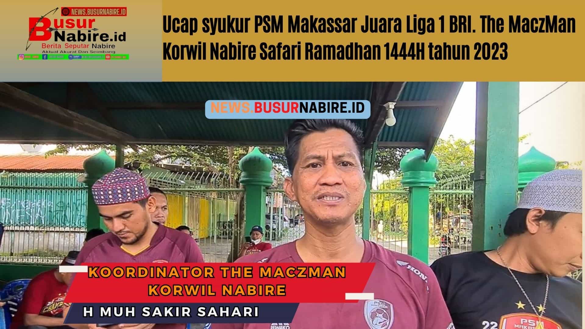 Ia mengatakan Kegiatan hari ini adalah The Maczman Safari Ramadhan yang sudah kita rencanakan dalam rangka menyambut kemenangan PSM terima piala juara Liga 1 BRI yang sudah kita nantikan selama 23 tahun. Ini penantian yang sangat luar biasa lamanya dan kita sangat bangga PSM juara liga 1 BRI tahun 2023.Ucap Koordinator The Maczman korwil nabire Papua tengah H Muh Sakir sahari.