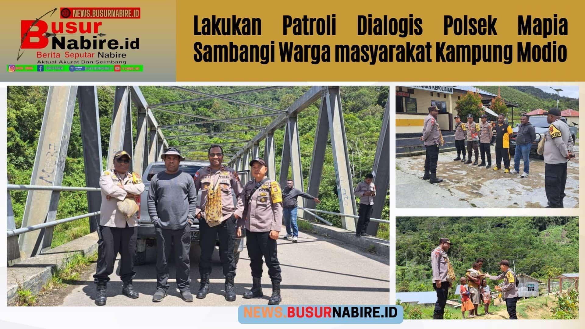 “Kasat Binmas Ipda Hans Nataniel Raubaba S.E di dampingi Kapolsek Mapia Ipda Fredrik Erix Demetouw bersama Anggota Polsek Mapia Lakukan Patroli Dialogis serta sambangi Warga Masyarakat Kampung Modio Distrik Mapia Tengah