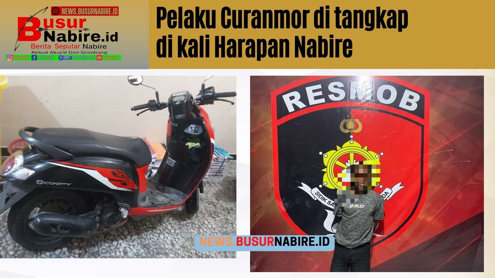 NEWS.BUSURNABIRE.ID – Nabire – Timsus Polres Nabire berhasil meringkus pelaku curanmor, bertempat di Jalan Pipit, Kaliharapan, Nabire, Papua Tengah, Rabu (03/05/2023).