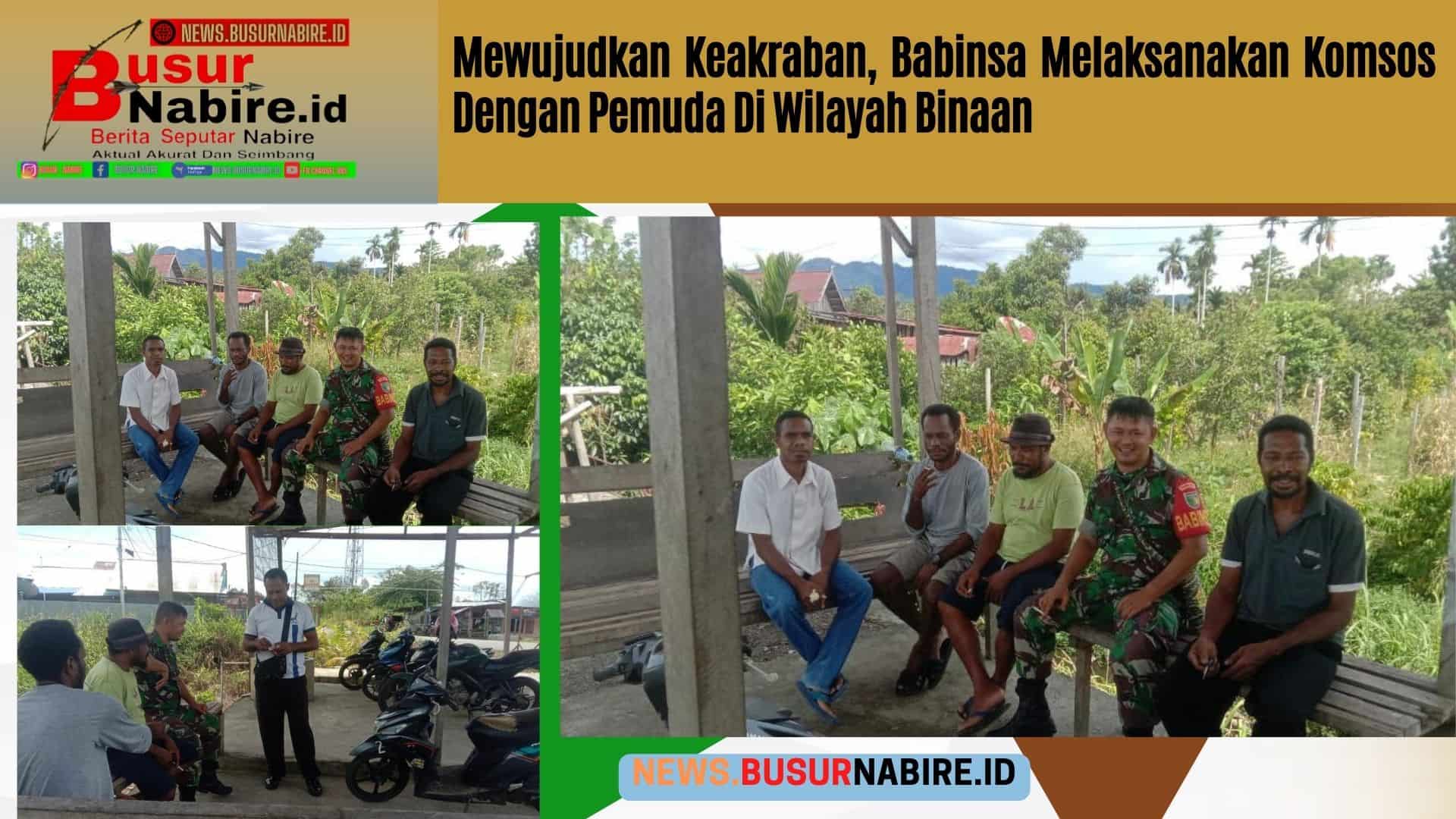 NEWS.BUSURNABIRE.ID – Nabire ~ Babinsa Koramil 1705/01 Nabire melaksanakan kegiatan Komunikasi Sosial (Kosmos) dengan pemuda kompleks di jln. Poros Samabusa Distrik Teluk kimi, Kabupaten Nabire Papua Tengah.