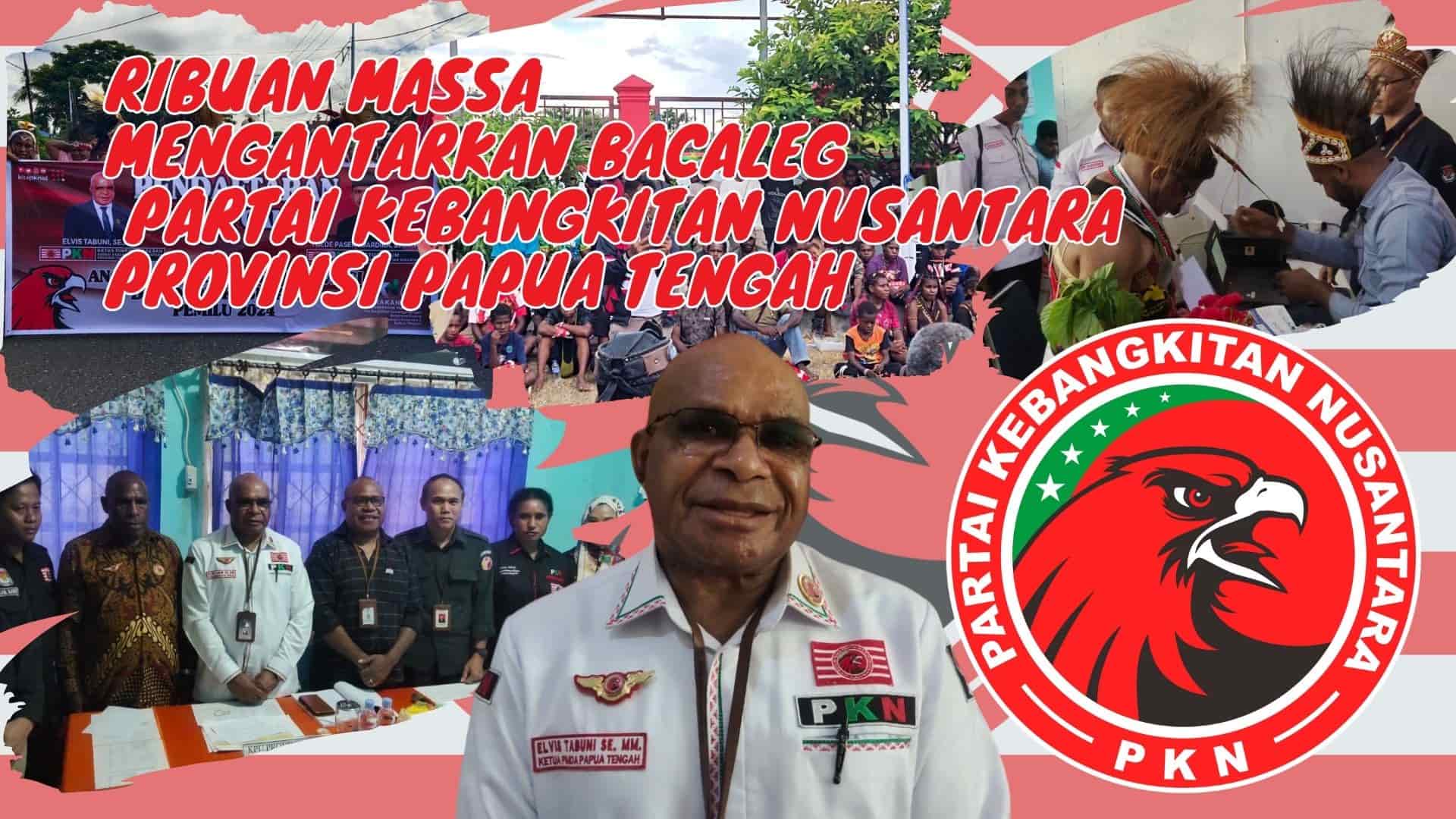 Setelah Di hari sabtu 13 mei 2023 berkas kelengkapan Bacaleg provinsi Papua tengah dinyatakan kurang lengkap,  Partai Kebangkitan Nusantara provinsi Papua tengah kembali di hari terakhir pendaftaran bacaleg hari minggu tanggal 14 mei 2023 tepat pada pukul 12 siang pimpinan Partai kebangkitan Nusantara provinsi papua tengah resmi menerima berita acara terkait pendaftaran bacaleg untuk provinsi papua tengah yang diserahkan langsung oleh Theodorus Kossay selaku Ketua Komisioner KPU Papua Tengah beserta anggota dan serta ketua Bawaslu Papua tengah Cipto Wibowo.