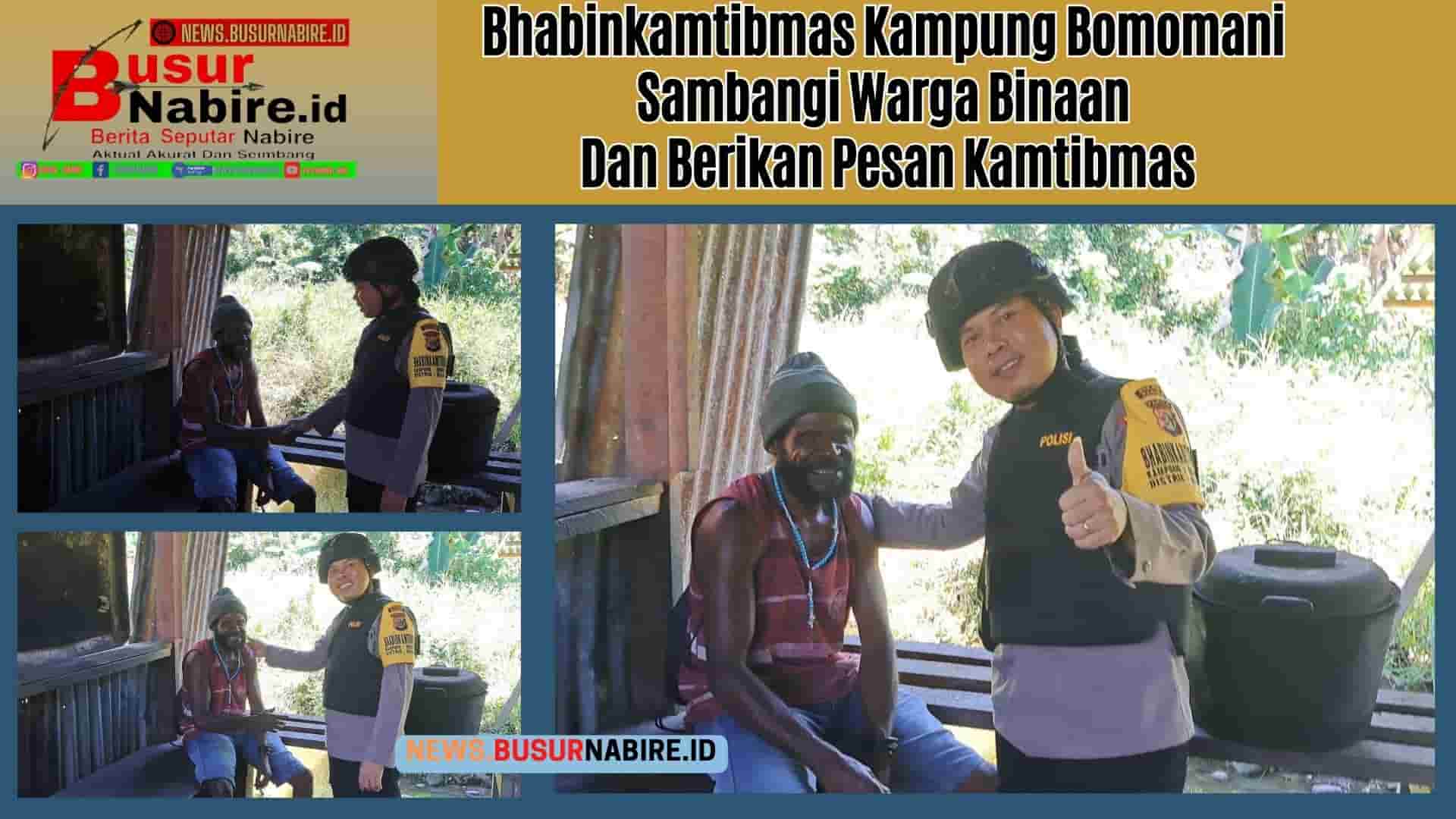 “Bhabinkamtibmas Kampung Bomomani Aipda Taslim menyampaikan pesan-pesan Kamtibmas sekaligus mengajak warga untuk lebih meningkatkan kewaspadaan dan kepedulian terhadap lingkungan masing-masing guna mencegah segala macam bentuk gangguan Kamtibmas.