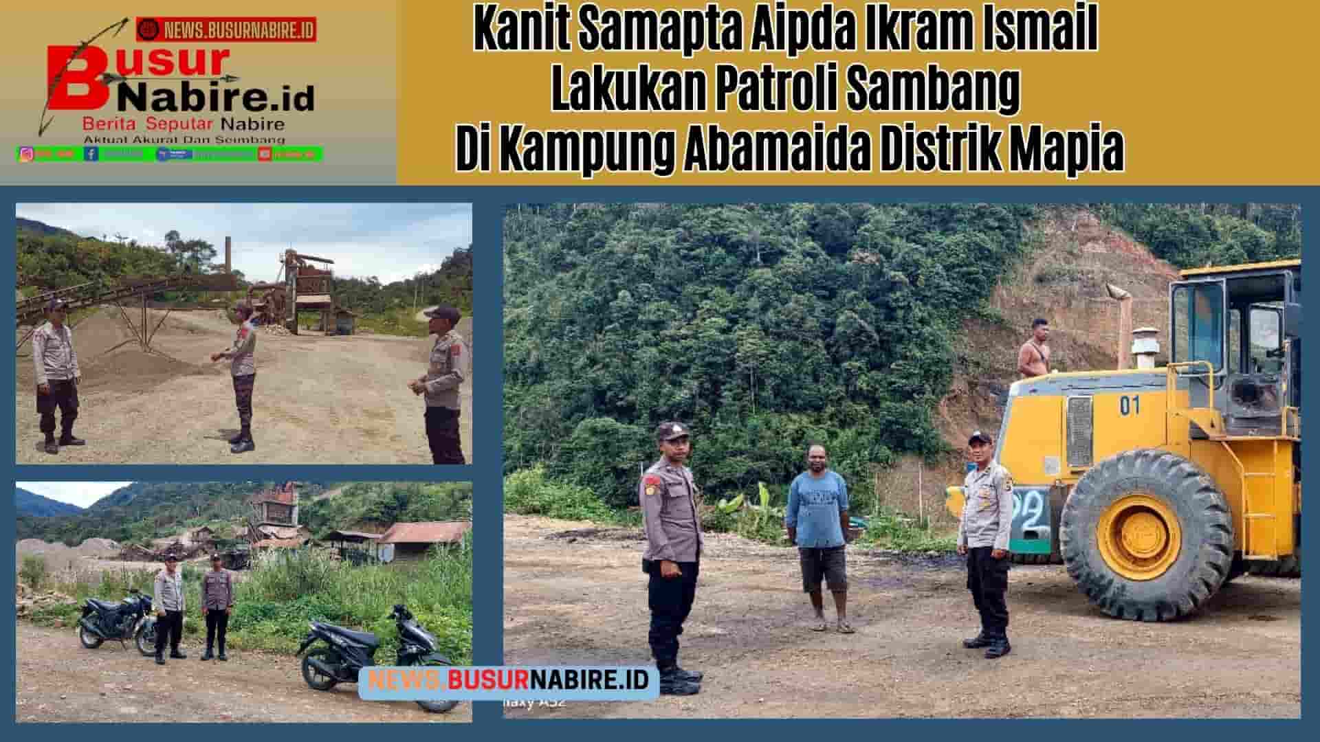 “Kapolsek Mapia Ipda Fredrik Erix Demetouw, melalui Kanit Samapta Aipda Ikram melakukan patroli sambang dengan sasaran Masyarakat Kampung Abaimaida Distrik Mapia kali ini Kanit samapta langsung bertemu dengan para pekerja perusahan PT Dewa Kresna yang sementara ini melakukan Pekerjaan di Wilayah Distrik Mapia Kab Dogiyai