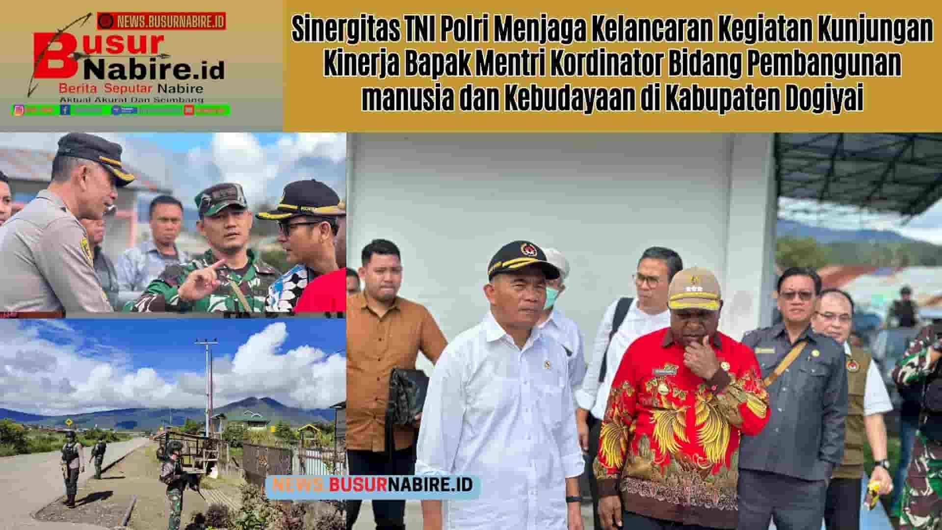 Dandim Kodim 1705 Nabire Letkol Inf Doni Firmansyah, M.Han didampingi Kapolres Dogiyai Kompol Sarraju, S.H selaku penanggung jawab pengamanan memimpin pelaksanaan kegiatan Pengamanan VIP dengan harapan agar pelaksanaan kegiatan Bapak Menteri PMK di provinsi papua tengah kabupaten Dogiyai berjalan aman lancar dan tertib