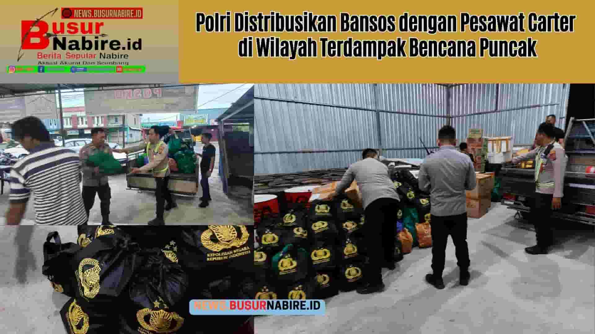 Polri Distribusikan Bansos dengan Pesawat Carter di Wilayah Terdampak Bencana Puncak