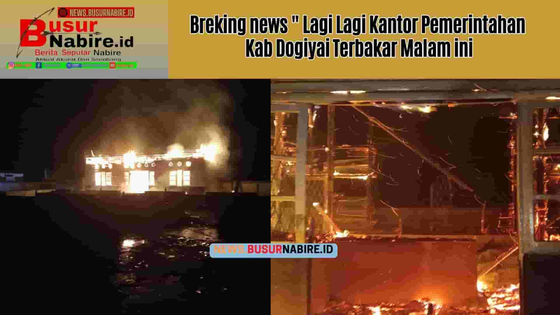 NEWS.BUSURNABIRE.ID – DOGIYAI.Kantor pemerintahan kab dogiyai lagi lagi di lalap api . Malam ini Minggu 3/9/2023 pukul 20.55 Wit telah terjadi Kebakaran 1 Unit bangunan Kantor BKSDM di Kampung Ekemanida Distrik Kamuu Kab. Dogiyai sampai berita ini dipublikasikan api masih menyala membakar Kantor tersebut . penyebab kebakaran belum diketahui