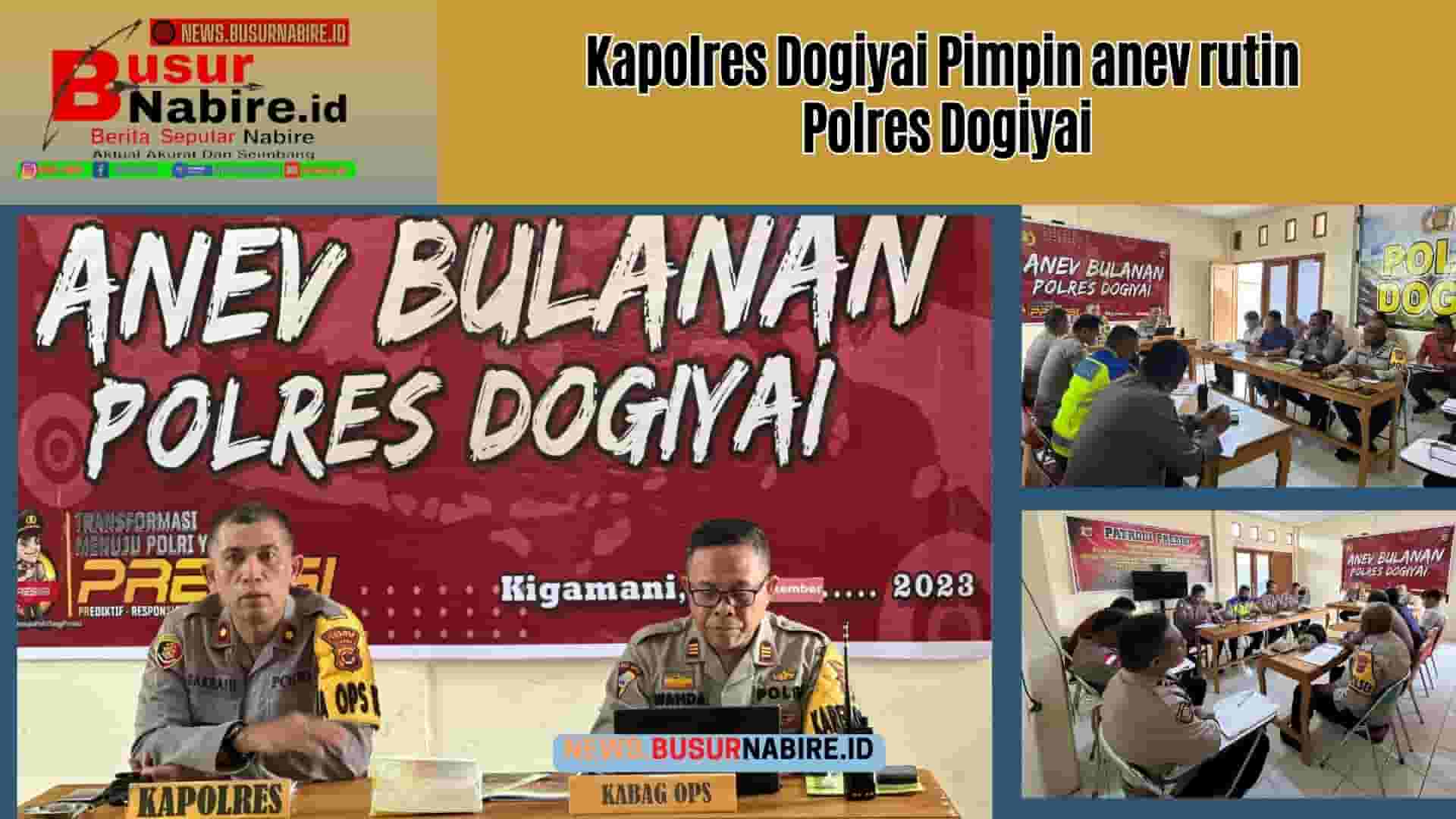 NEWS.BUSURNABIRE.ID. Kigamani, Bertempat di Aula Bhayangkari Polres Dogiyai dilaksanakan anev ( analisa dan evaluasi) pelaksanan tugas yang dipimpin oleh Kapolres Dogiyai KOMPOL SARRAJU, SH Kamis (7/9/2023).