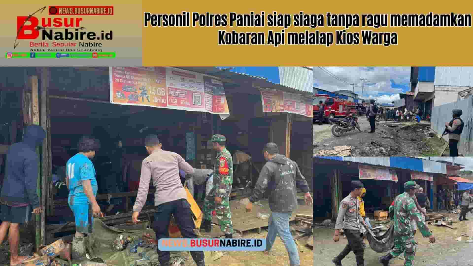NEWS.BUSURNABIRE.ID – Paniai- Dalam situasi darurat,ketika adanya kebakaran, personil polres paniai tidak tinggal diam,dengan sigap dan tanpa ragu – ragu personil polres paniai menuju lokasi kebakaran kios di Kompleks PLN Distrik Paniai Timur, Kab Paniai, Jumat (15/09).