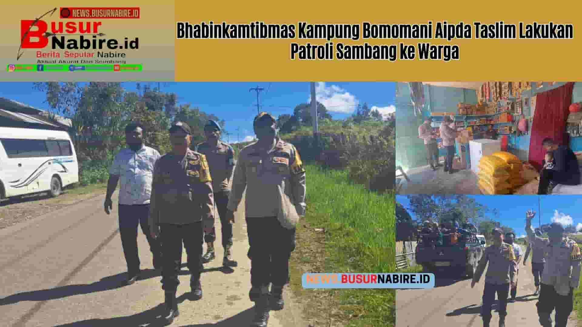 NEWS.BUSURNABIRE.ID – Bomomani – Kegiatan Patroli sambang rutin dilaksanakan oleh seorang Babinkamtibmas di wilayah desa binaannya setiap hari guna sebagai upaya mendekatkan diri kepada masyarakat juga memberikan pesan-pesan kamtibmas diantaranya menghimbau kepada masyarakat agar meningkatkan kewaspasaan guna mencegah terjadinya tindak kriminal” Senin 16 Oktober 2023