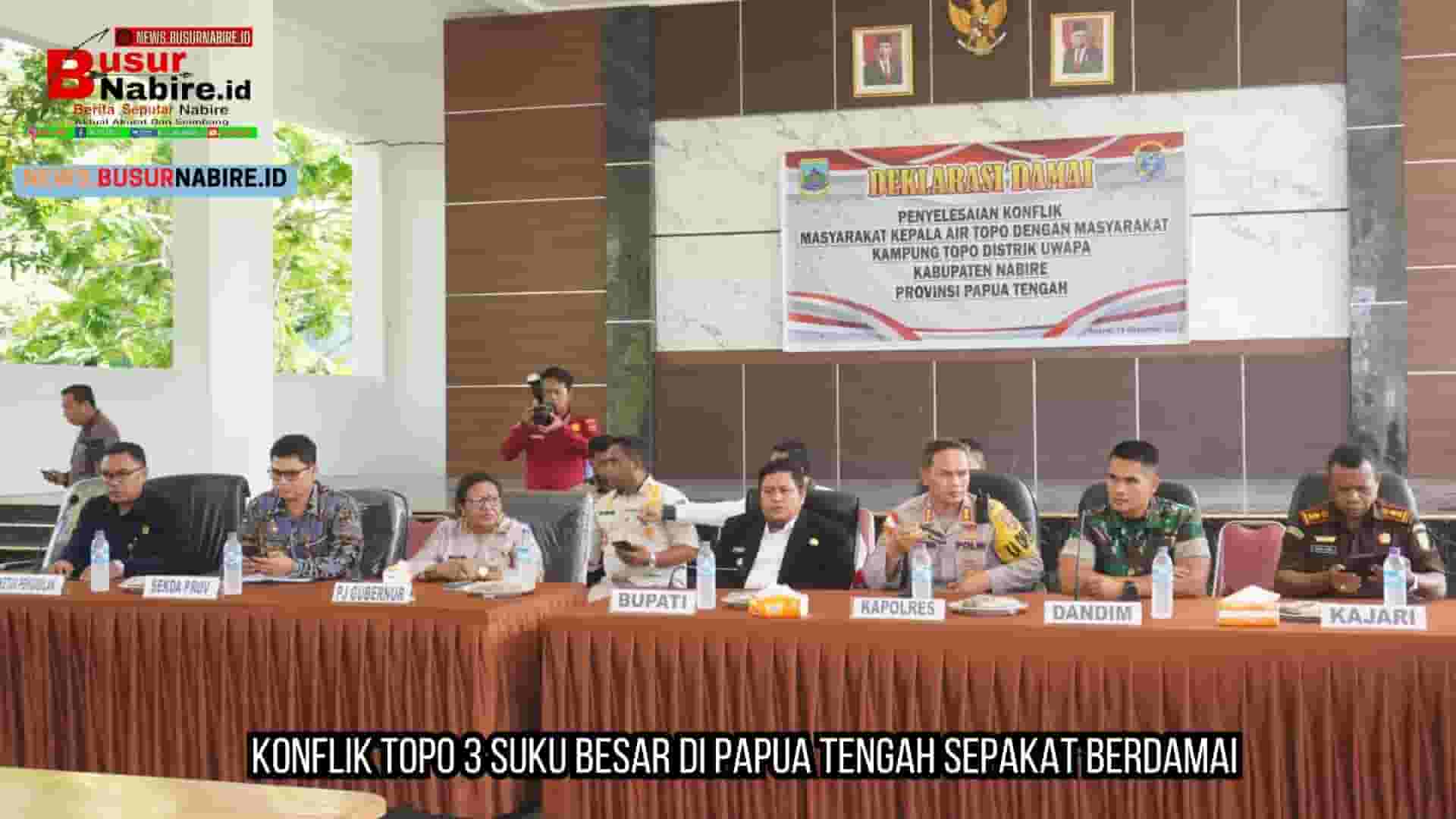 NEWS.BUSURNABIRE.ID – NABIRE- Penjabat Gubernur Papua Tengah, Dr. Ribka Haluk, S.Sos., MM memimpinnya proses perdamaian antara Suku Mee, Suku Dani dan Suku Wate atas konflik di Topo Distrik Uwapa, Kabupaten Nabire yang telah terjadi sejak 5 Juni 2023 lalu.
