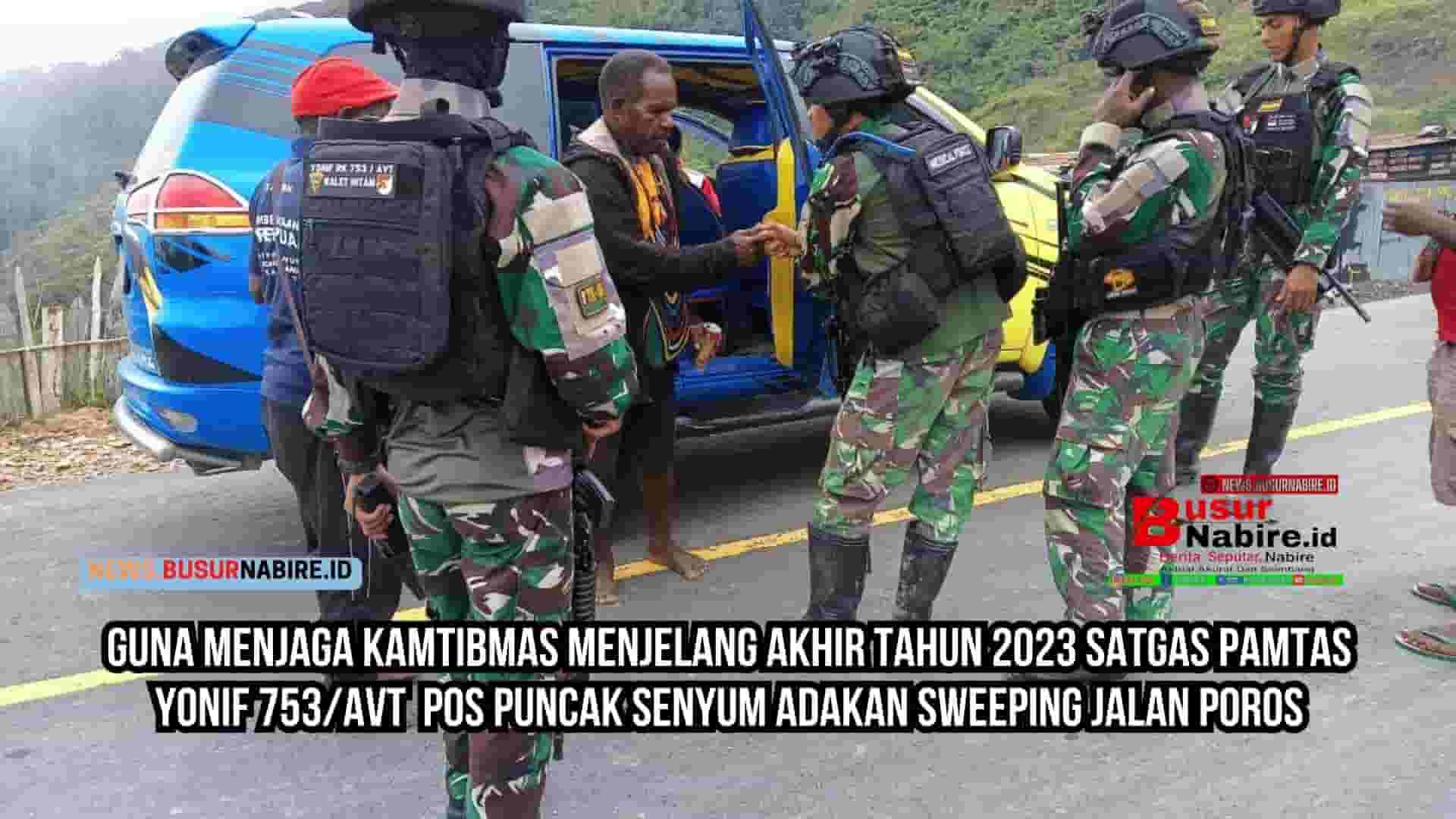 NEWS.BUSURNABIRE.ID – Guna mengantisipasi Situasi keamanan yang kondusif di puncakjaya jelang pergantian tahun ,Satgas Pamtas Kewilayahan Yonif 753AVT pos puncak senyum mengadakan sweeping/pemeriksaan kendaraan yang melintasi jalan poros menuju Puncak Jaya.Minggu 31/12/2023