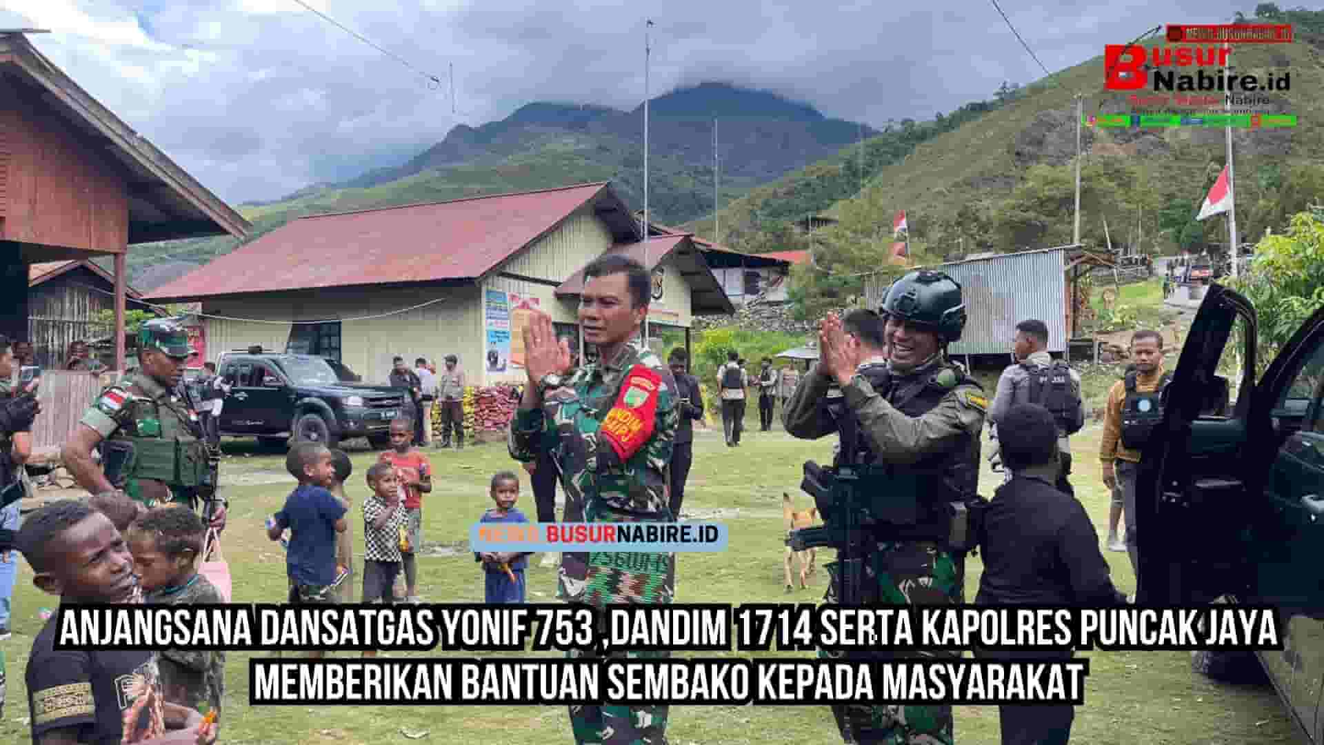 Anjangsana Dansatgas Yonif 753 ,Dandim 1714 serta Kapolres Puncak jaya  memberikan bantuan sembako kepada Masyarakat
