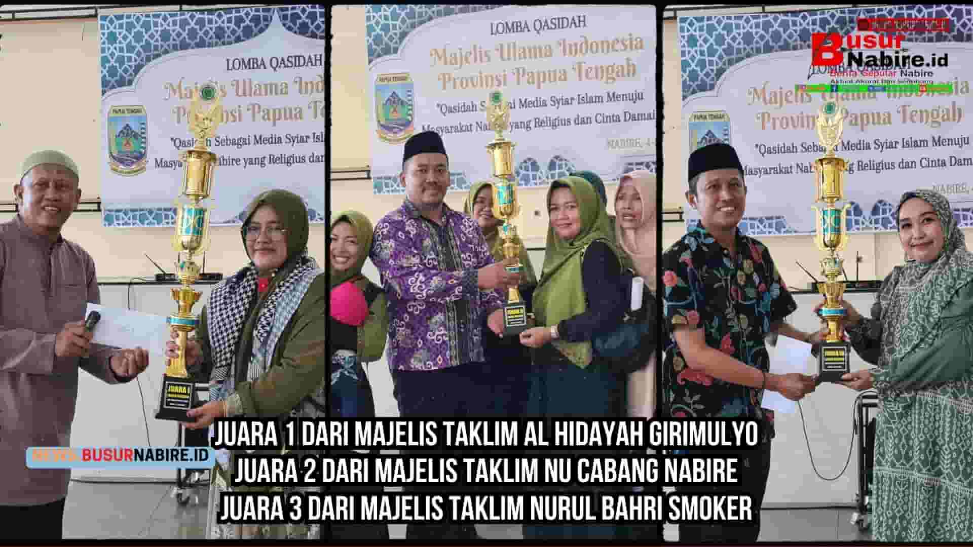 Juara 1 dari Majelis Taklim Al hidayah girimulyo Juara 2 dari Majelis Taklim NU cabang Nabire Juara 3 dari Majelis Taklim Nurul Bahri smoker