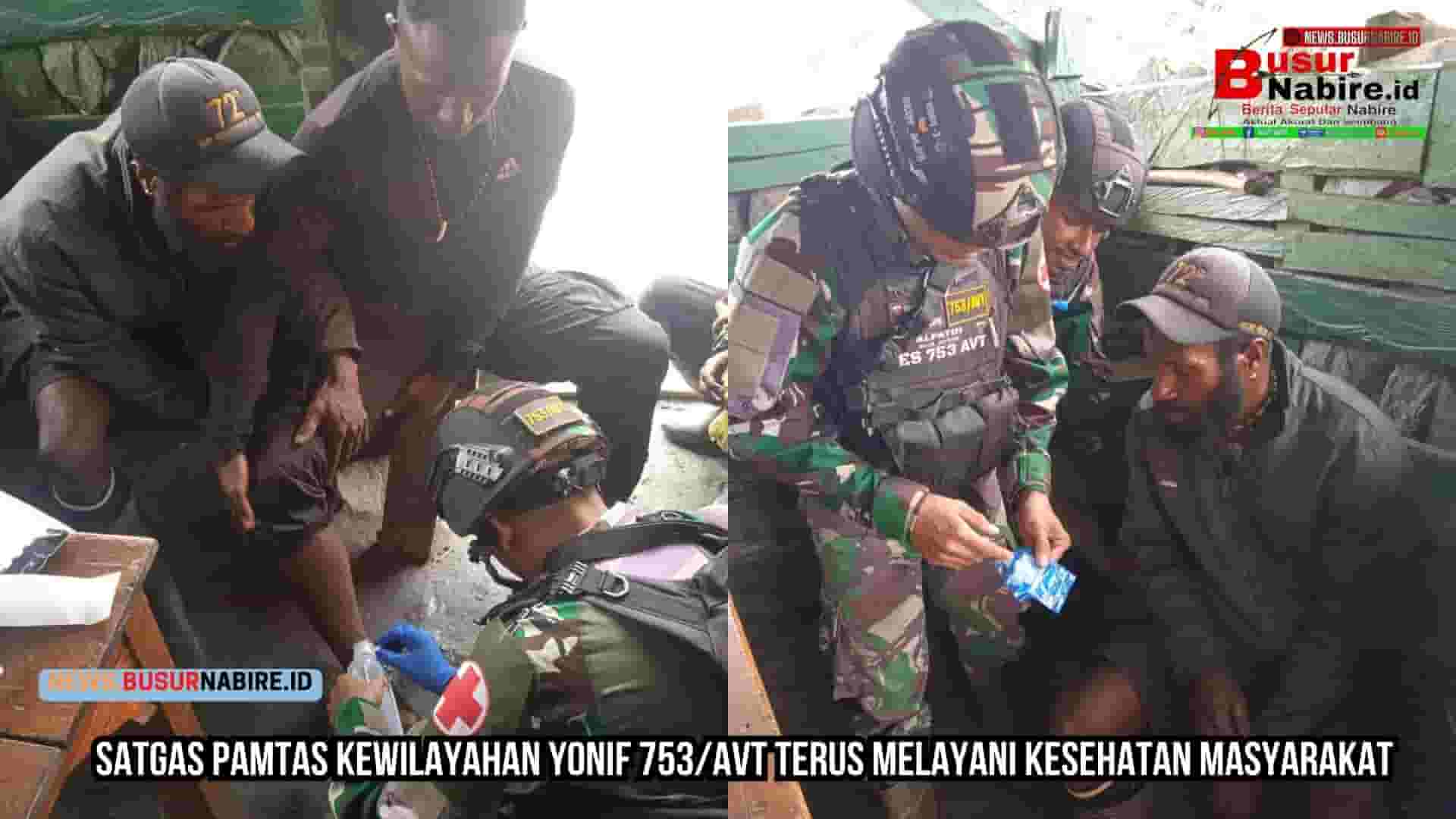 NEWS.BUSURNABIRE.ID – Puncak Jaya~terus tingkatkan pelayanan kesehatan terhadap masyarakat, Satgas Pamtas Kewilayahan Yonif 753/AVT buka pelayanan kesehatan di pos dalam upaya membantu pelayanan bagi masyarakat yang mempunyai keluhan kesehatan di kampung puncak senyum, Distrik Puncak Senyum, Kab. Puncak Jaya, Sabtu (06/01/2024).