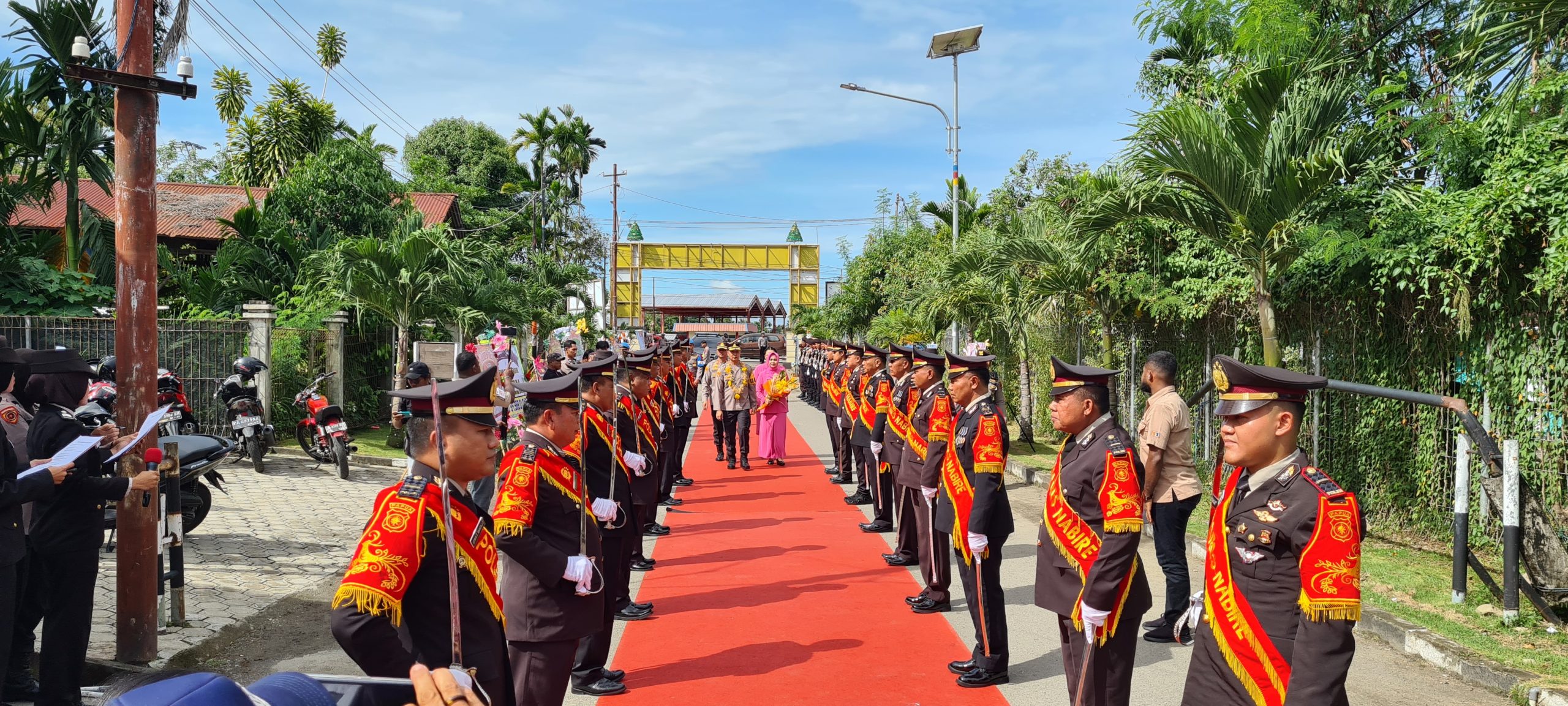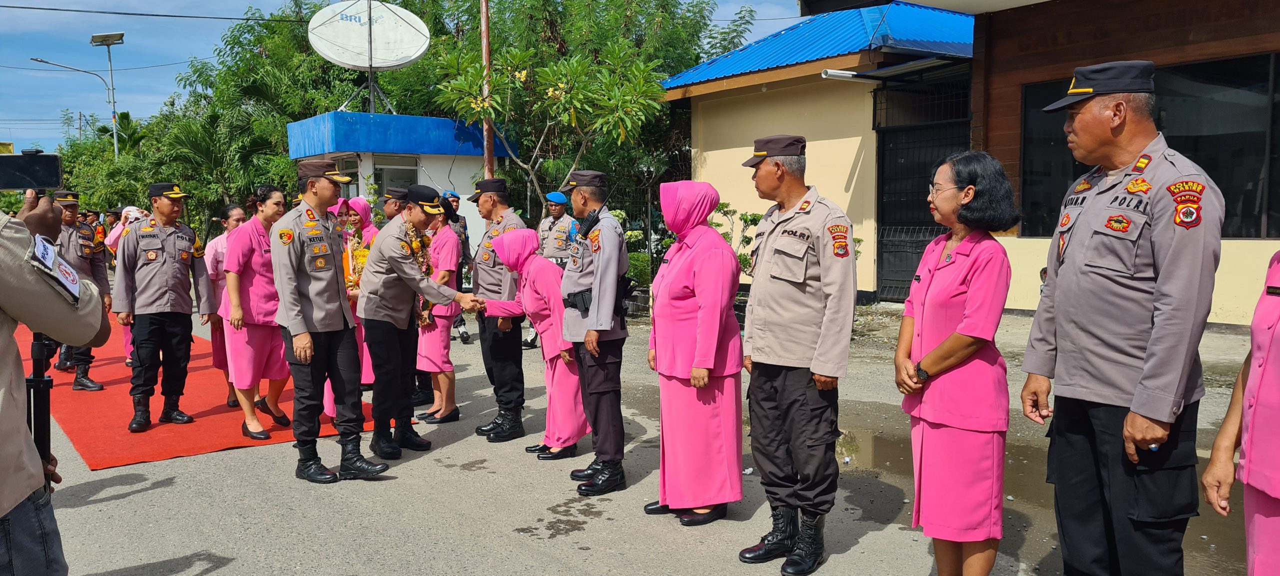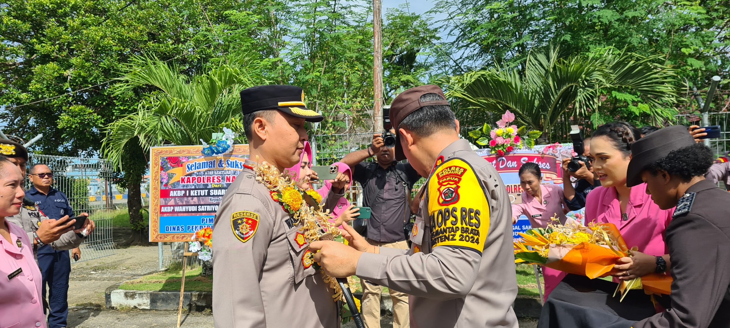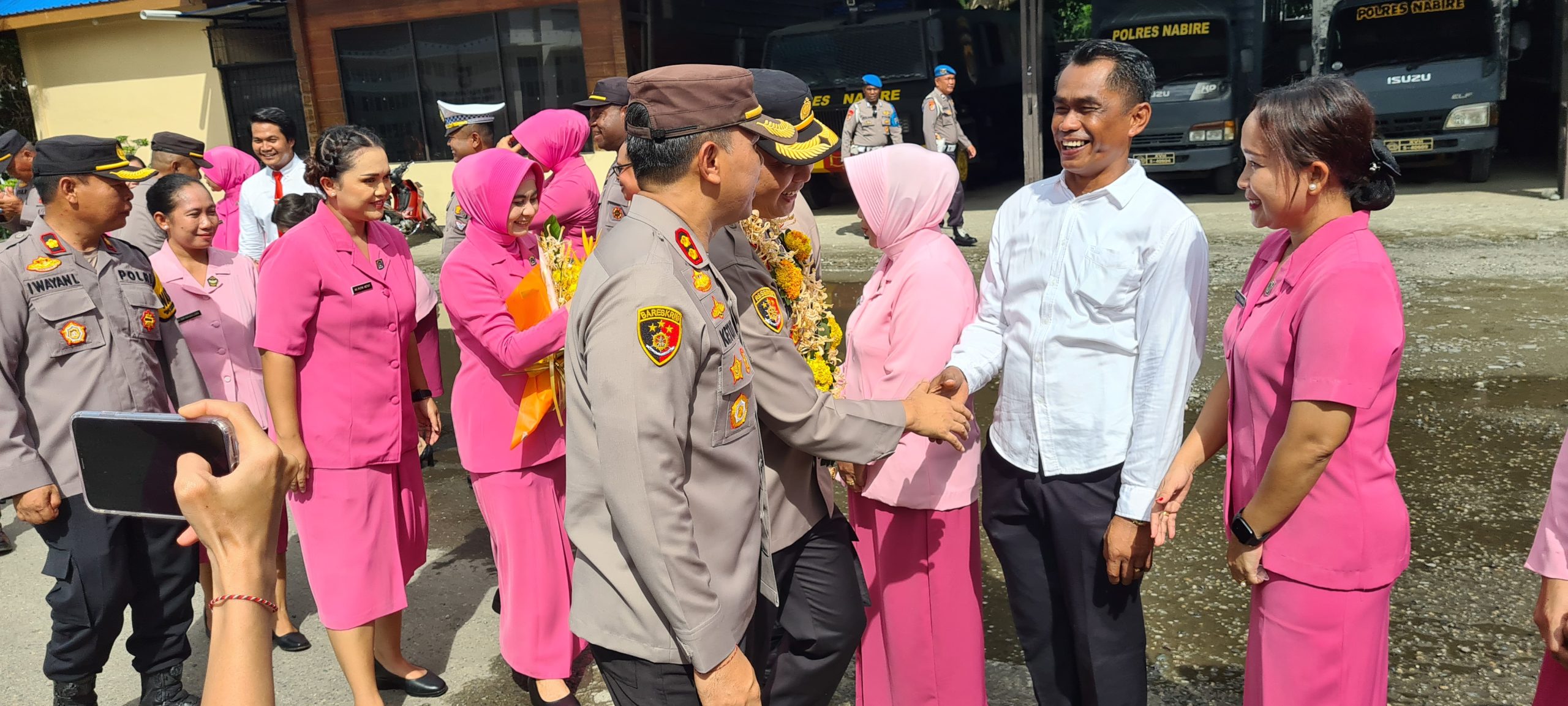 Kedatangan Kapolres Nabire yang baru ini diterima langsung Waka Polres Nabire Kompol I Wayang Laba dan disambut hangat oleh Kapolres Nabire yang Lama dengan acara penyambutan berupa pengalungan Bunga. Penyerahan Karangan bunga oleh Ny. Putri Ketut Suaryana kepada Kepala Cabang Bahayangkari Polres Nabire yang Baru .Senin 8/1/2024