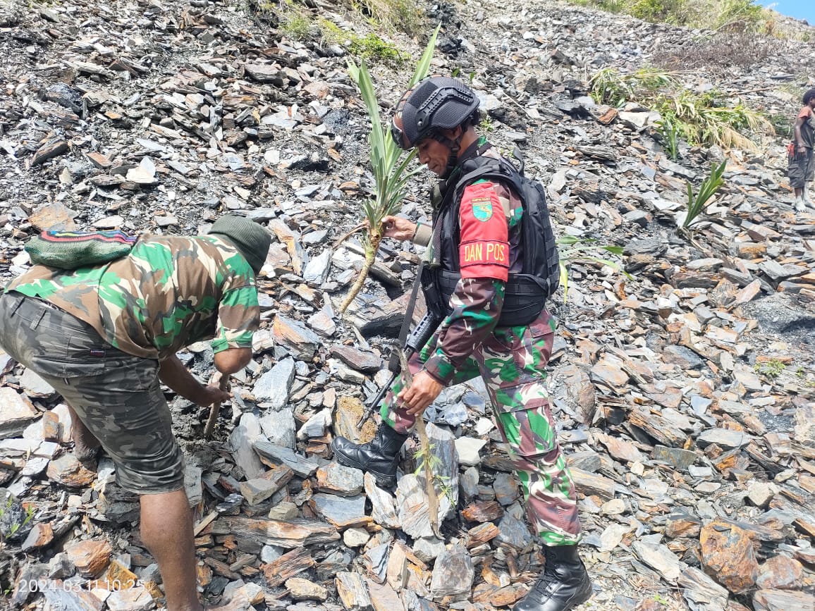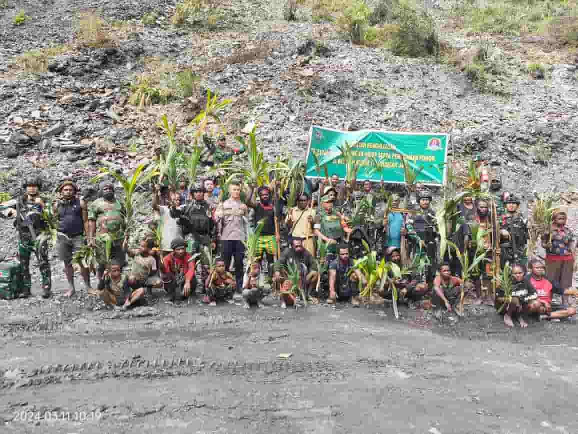 Kegiatan penanaman pohon yang dilaksanakan Satgas Yonif 753/AVT dan aparat terkait di Distrik Tinggi Nambut untuk melestarikan dan penghijauan kembali lingkungan guna mencegah terjadinya bencana alam tanah longsor kedepannya , harapnya.