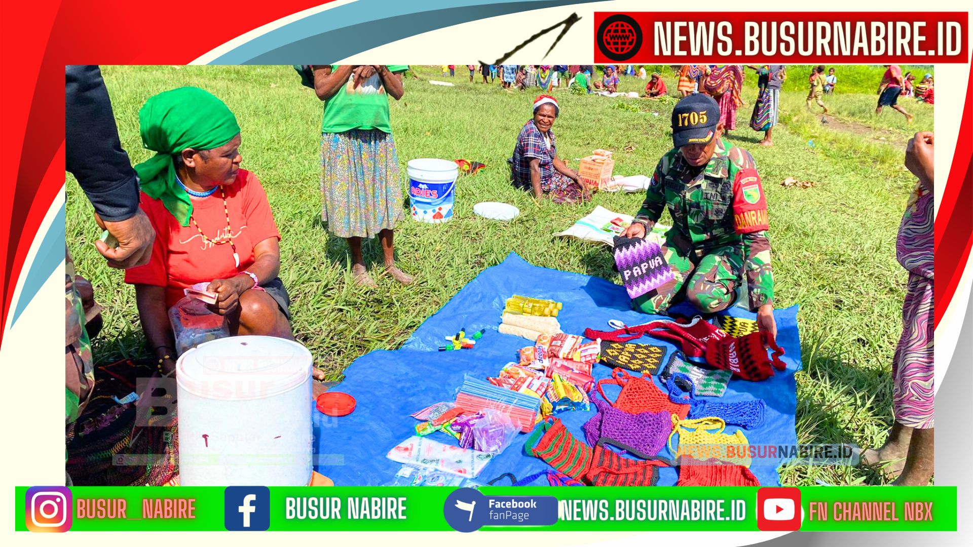 NEWS.BUSURNABIRE.ID – Intan Jaya: Dalam upaya mempererat hubungan dengan masyarakat, Danramil 1705-05/Homeyo, Lettu Inf. Marcus Tunyanan, melaksanakan kegiatan Komunikasi Sosial (Komsos) di Pasar Kampung Pogapa, Distrik Homeyo, Kabupaten Intan Jaya, Papua Tengah 28 Januari 2025. Kegiatan ini menjadi sarana strategis bagi TNI untuk mendekatkan diri dengan warga, khususnya para mama-mama perajin noken.