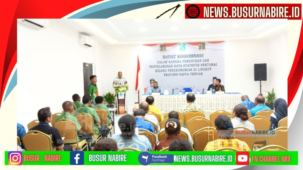 NEWS.BUSURNABIRE.ID -Nabire: Pemerintah Provinsi Papua Tengah menggelar Rapat Koordinasi Pemenuhan dan Penyelarasan Data Statistik Sektoral Bidang Perekonomian tahun 2025 pada Kamis, 13 Februari 2025. Kegiatan yang berlangsung di Gedung Hotel Yahor In ini bertujuan untuk memperkuat sinergi dalam pengelolaan data statistik sektoral guna mendukung pembangunan ekonomi yang berkelanjutan dan berkeadilan di wilayah Papua Tengah.
