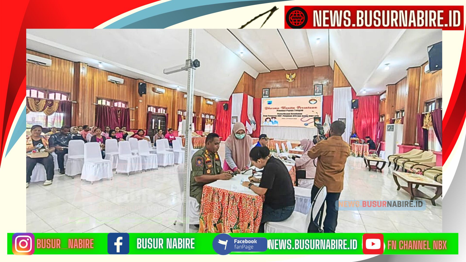 NEWS.BUSURNABIRE.ID – Nabire:Dharma Wanita Persatuan (DWP) Provinsi Papua Tengah mengadakan kegiatan pemeriksaan kesehatan gratis yang ditujukan bagi pengurus DWP, pimpinan Organisasi Perangkat Daerah (OPD), serta Ketua DWP OPD se-Provinsi Papua Tengah. Kegiatan ini berlangsung di Aula Kantor Gubernur Provinsi Papua Tengah, Jl. Merdeka, Kabupaten Nabire,Jumat 14/2/2025