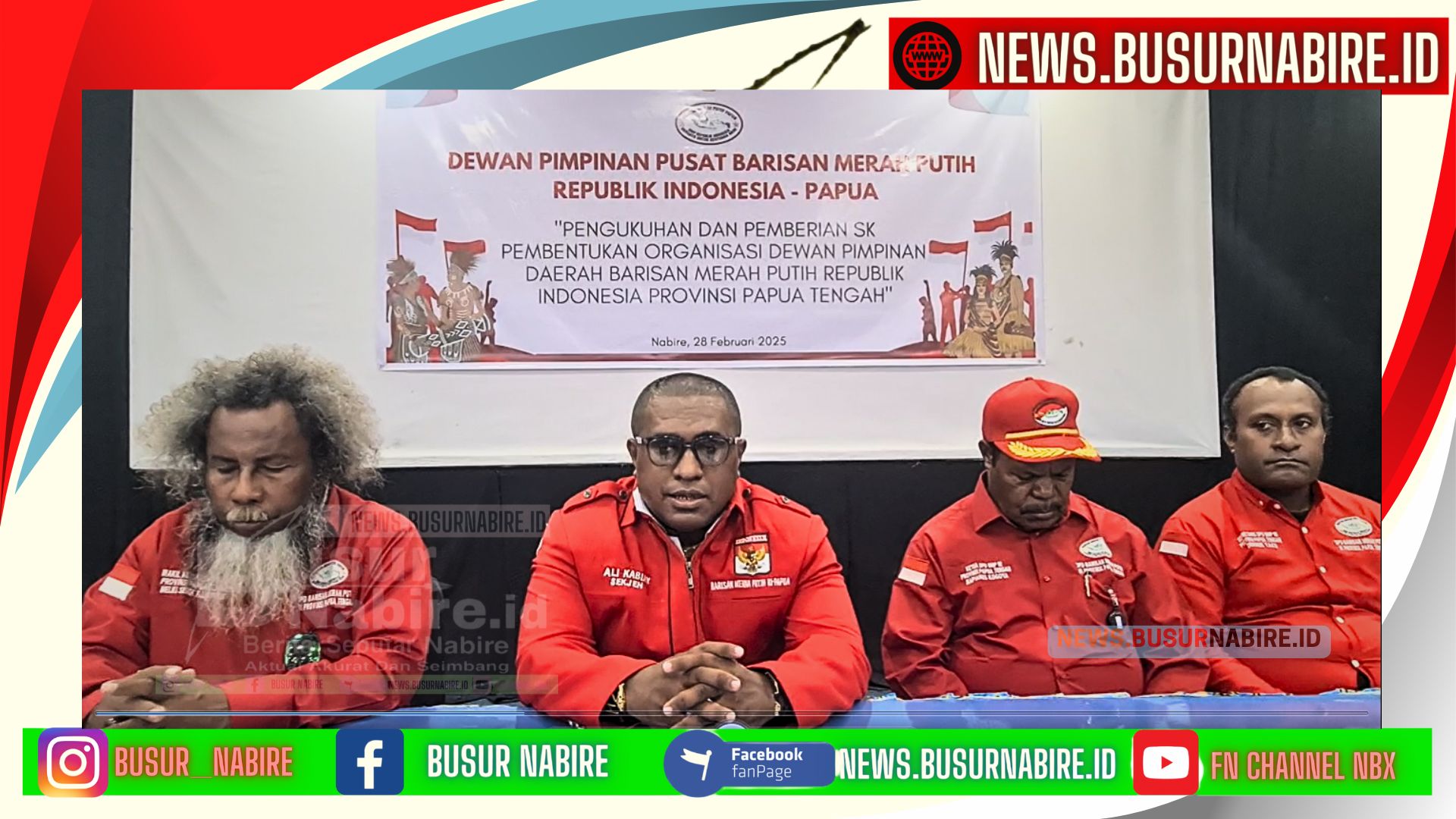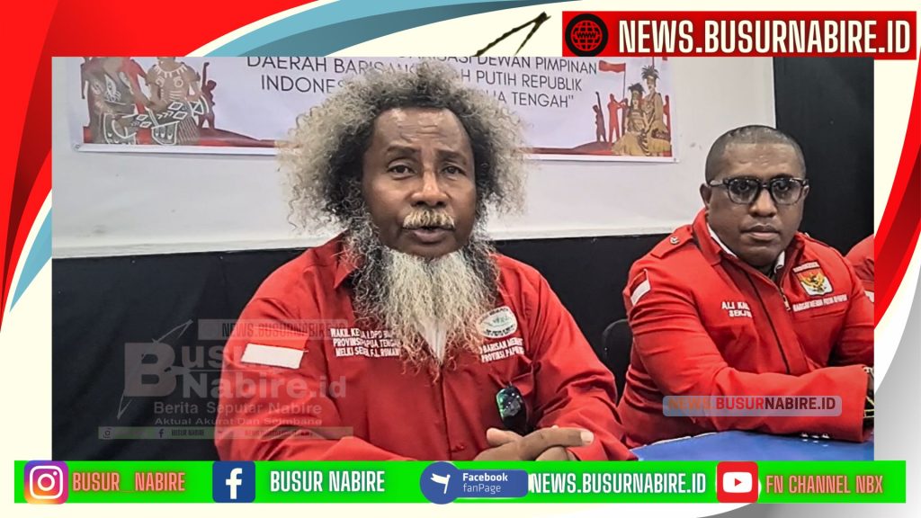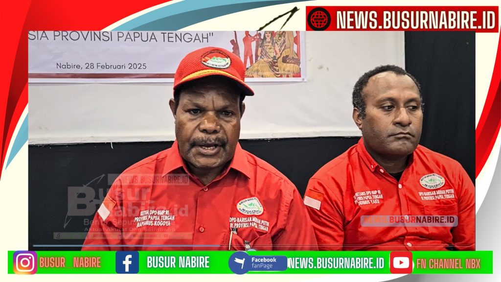 NEWS.BUSURNABIRE.ID: Usai acara pengukuhan dan pemberian Surat Keputusan (SK) pembentukan Dewan Pimpinan Daerah (DPD) Barisan Merah Putih (BMP) Republik Indonesia (RI) Provinsi Papua Tengah, Ketua DPD BMP RI Papua Tengah, Napianus Kogoya, dan Wakil Ketua, Melkisedek Rumawi, memberikan wawancara khusus kepada awak media. Acara berlangsung di Aula LPP RRI, Jalan Merdeka, Kabupaten Nabire, Provinsi Papua Tengah, pada tanggal 28 Februari 2025.