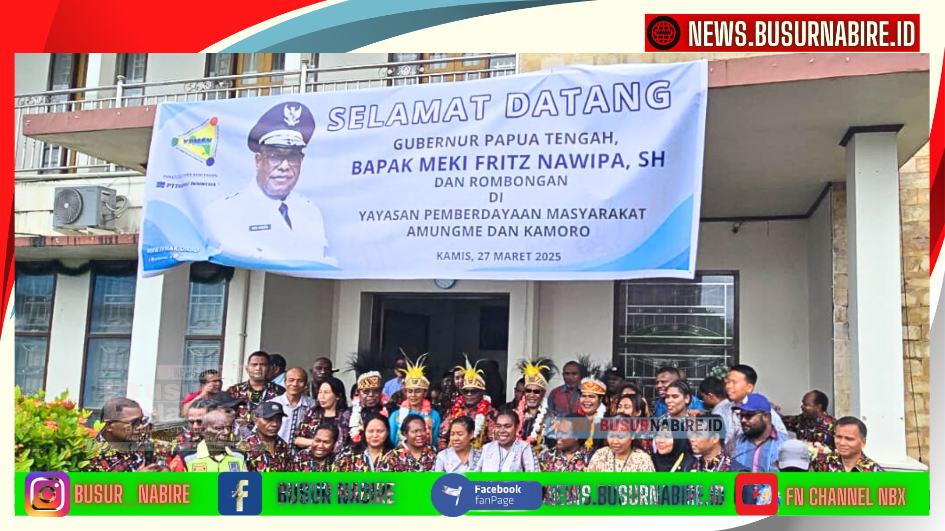 NEWS.BUSURNABIRE.ID – Mimika: Gubernur Provinsi Papua Tengah, Meki Nawipa, bersama istri serta Wakil Gubernur Deinas Geley dan istri, melakukan kunjungan resmi ke Yayasan Pemberdayaan Masyarakat Amungme dan Kamoro (YPMAK) pada Kamis (27/3/2025). Kunjungan ini menandai pertama kalinya keduanya hadir di Kabupaten Mimika sejak menjabat.