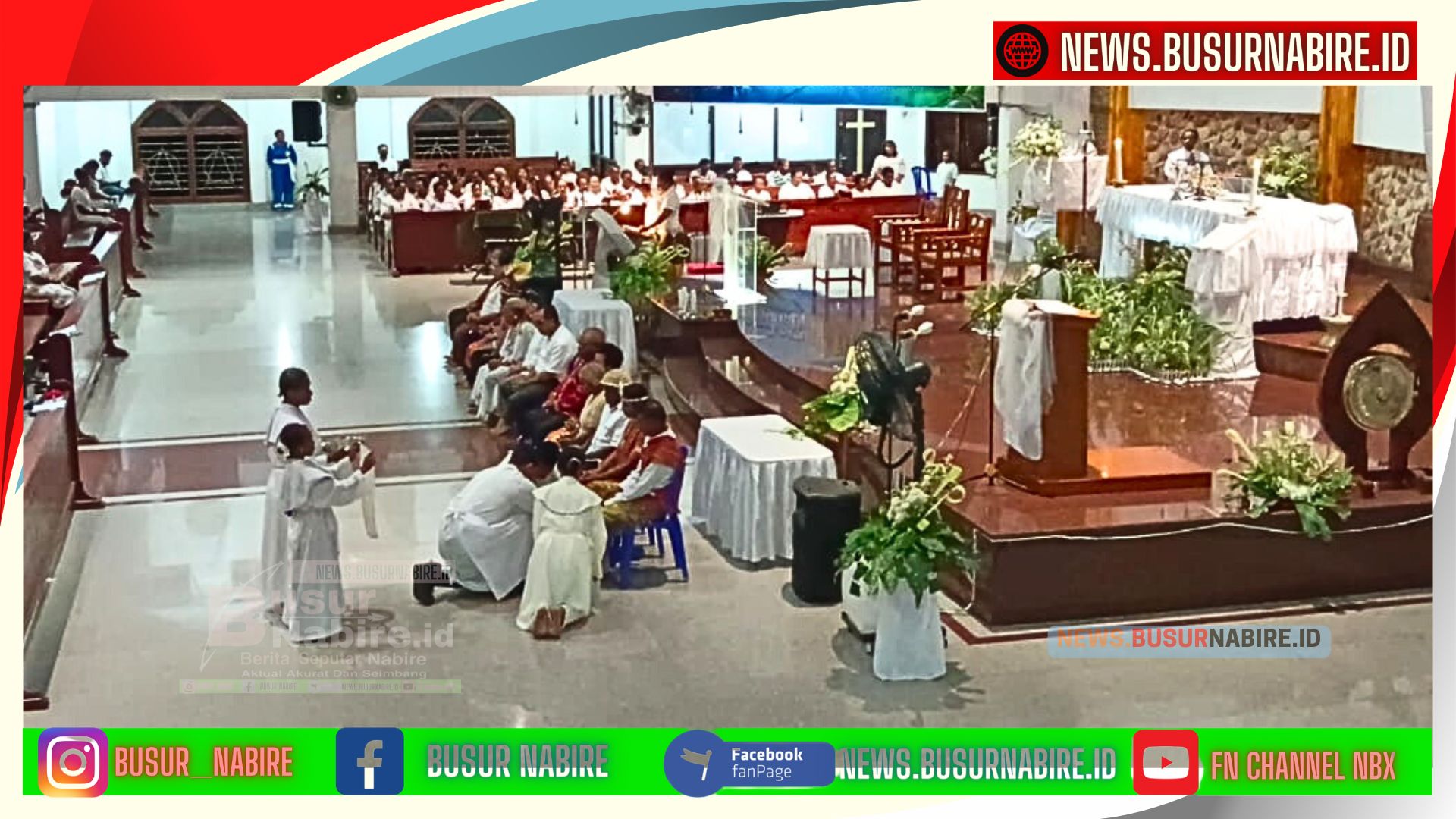 NEWS.BUSURNABIRE.ID – NABIRE : Umat Katolik Paroki Kristus Sahabat Kita (KSK) Nabire, Dekenat Teluk Cenderawasih, Keuskupan Timika, mengikuti Misa Kamis Putih yang sarat makna pada Kamis (17/04/2025). Perayaan yang menandai dimulainya Tri Hari Suci Paskah ini digelar dalam dua sesi dan diwarnai dengan simbol penting dalam ajaran Kristiani, yaitu pembasuhan kaki.