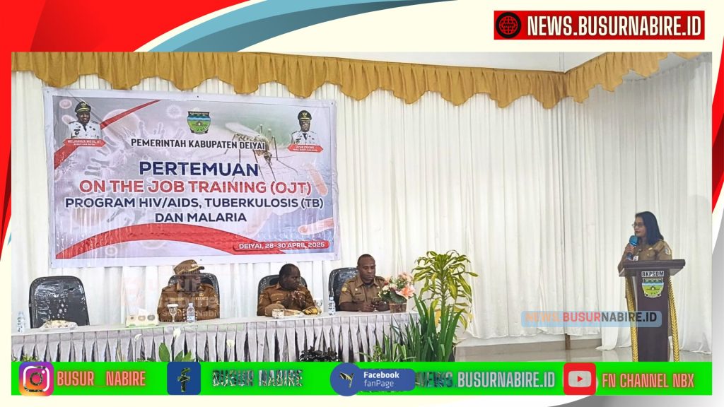 NEWS.BUSURNABIRE.ID – Deiyai: Dinas Kesehatan Papua Tengah Pengendalian Penduduk, dan Keluarga Berencana Provinsi Papua Tengah menggelar On the Job Training (OJT) untuk pengelola program HIV/AIDS, Tuberkulosis, dan Malaria (ATM) di Aula BKD Kabupaten Deiyai. Kegiatan ini berlangsung pada Senin, 27 April 2025, dengan dihadiri oleh berbagai pejabat penting, termasuk Bupati Kabupaten Deiyai, Bapak Melkianus Mote, Wakil Bupati Ayub Pigome, serta Kepala Dinas Kesehatan Kabupaten Deiyai, Mando Mote, S.IP.