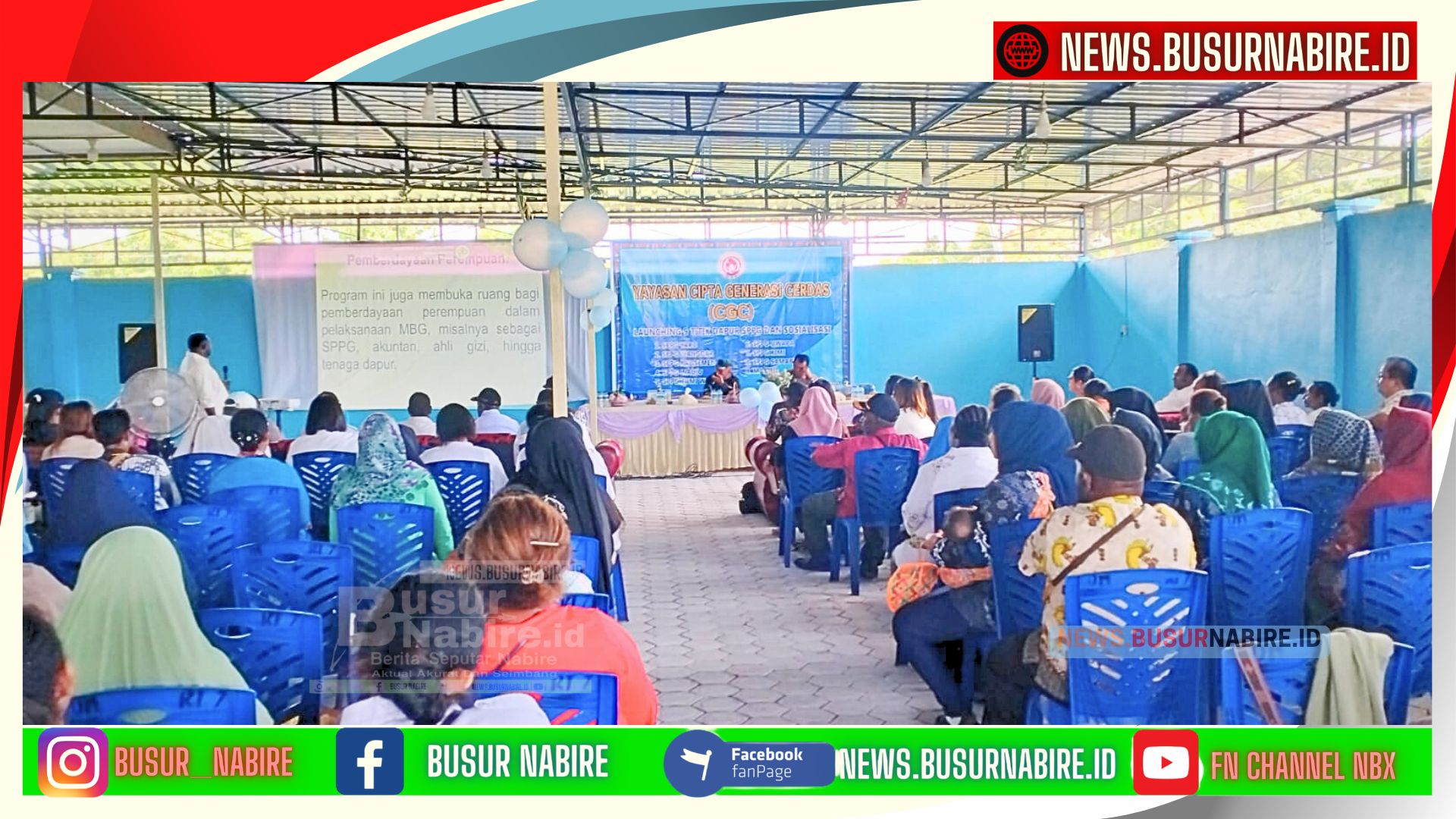 NEWS.BUSURNABIRE.ID -Nabire: Yayasan Cipta Generasi Cerdas menggelar kegiatan Launching 9 Titik Dapur SPPG (Sentra Pangan Pemberdayaan Gizi) sekaligus Sosialisasi Program Makan Bergizi Gratis (MBG) di Gedung Aula Yayasan, Kampung Yaro Makmur, Distrik Yaro, Kabupaten Nabire, Papua Tengah. Kegiatan ini menjadi langkah nyata dalam mendukung upaya peningkatan kualitas gizi anak-anak sekolah serta menekan angka stunting di wilayah Papua Tengah.