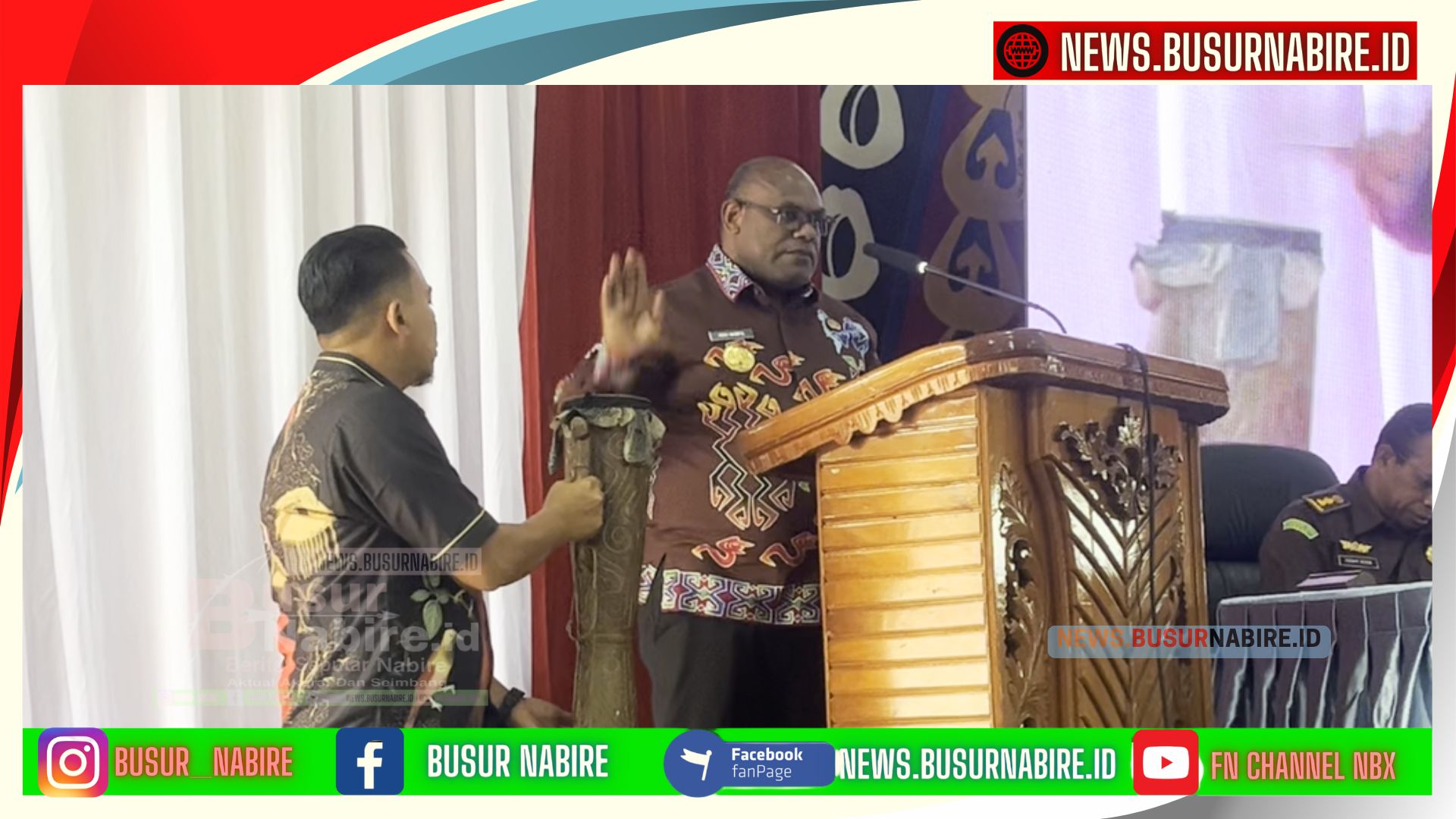 Gubernur Meki Nawipa menyampaikan rasa syukur dan apresiasinya atas kehadiran para peserta dan tamu undangan, termasuk Tim Kejaksaan Tinggi Papua (Foto: Busur Nabire)