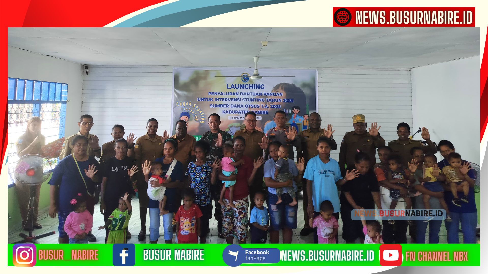 NEWS.BUSURNABIRE.ID – Nabire | Pemerintah Kabupaten Nabire resmi meluncurkan Penyaluran Bantuan Pangan untuk Intervensi Stunting Tahun 2025 pada Senin pagi (4/8/2025) di Puskesmas Sanoba, Distrik Nabire.