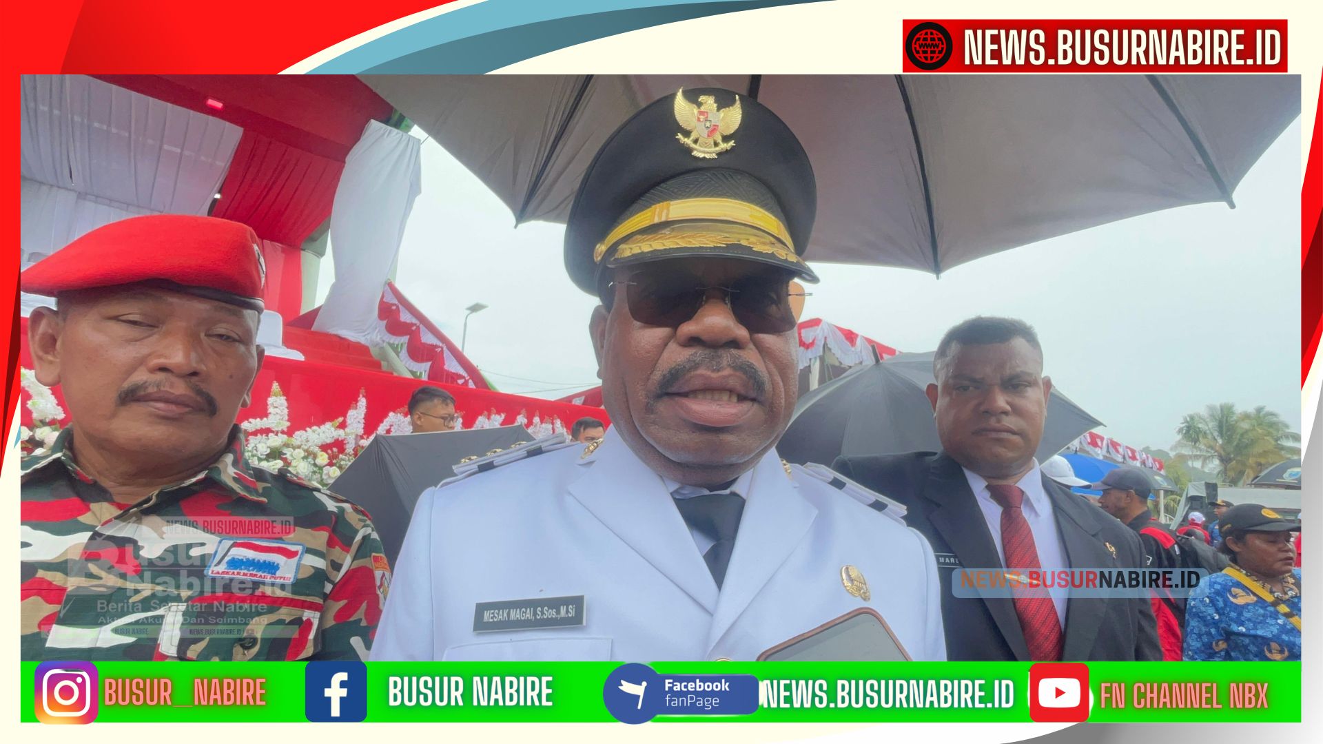 NEWS.BUSURNABIRE.ID – Nabire | Pasukan Pengibar Bendera Pusaka (Paskibraka) Kabupaten Nabire mendapat apresiasi tinggi dari Bupati Nabire, Mesak Magai,S.Sos.,M.Si usai sukses mengibarkan bendera pada upacara HUT ke-80 Kemerdekaan Republik Indonesia yang berlangsung di Lapangan Sapta Marga Kodim 1705 Nabire, Papua Tengah, Minggu (17/8/2025).