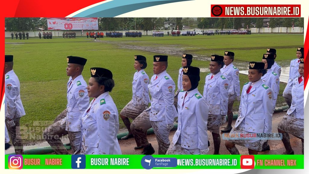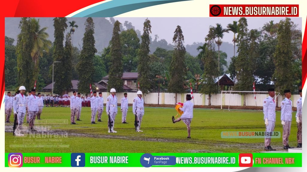 Meski lapangan becek dan pakaian peserta upacara ternoda lumpur, pasukan Paskibraka tetap menjalankan tugas dengan gagah dan penuh pengabdian. Upacara yang mengusung tema “Bersatu, Berdaulat, Rakyat Sejahtera, Indonesia Maju” ini dipimpin langsung oleh H. Burhanuddin Pawenari, Wakil Bupati (WaBup) Nabire sebagai inspektur upacara.