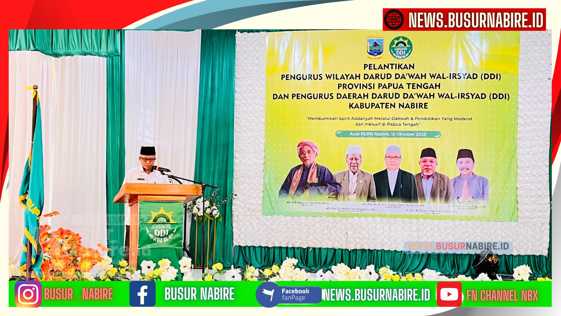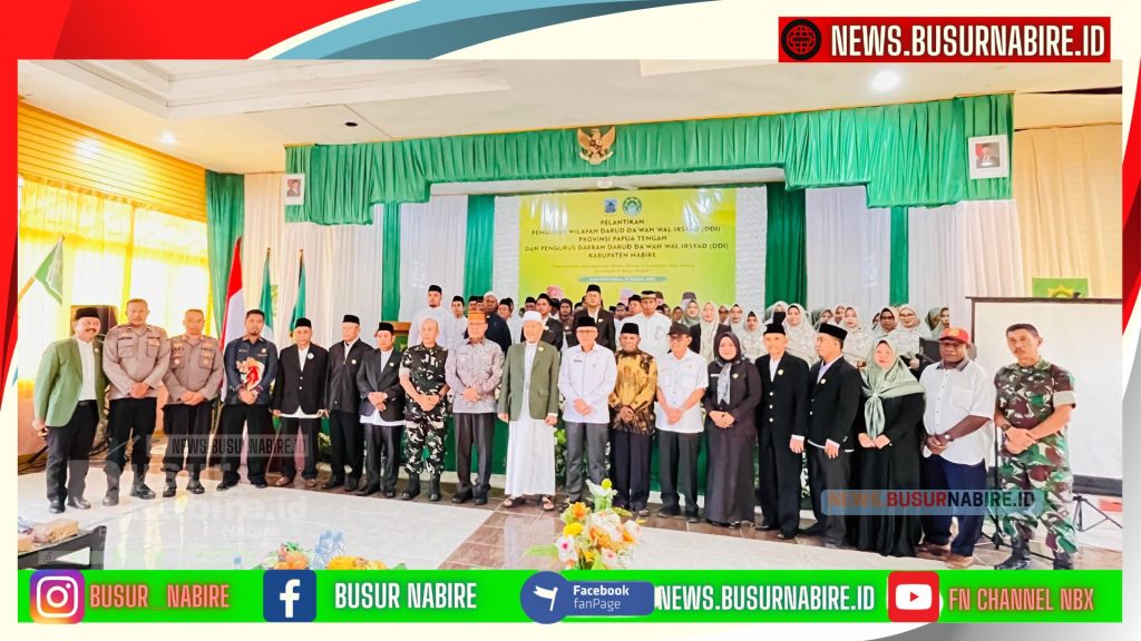 NEWS.BUSURNABIRE.ID – Nabire | Pelantikan Pengurus Wilayah Darud Da’wah Wal Irsyad (DDI) Provinsi Papua Tengah dan Pengurus Daerah Kabupaten Nabire masa bakti 2025–2030 berlangsung khidmat di Aula PU Jalan Merdeka, Kabupaten Nabire, Rabu (15/10/2025).