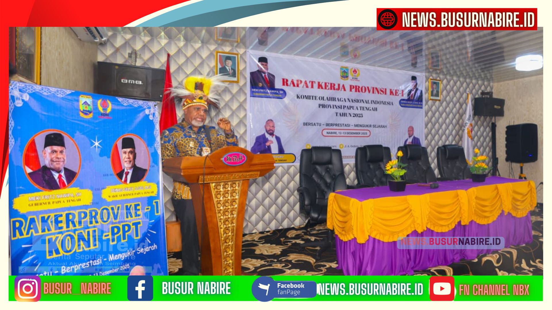 NEWS.BUSURNABIRE.ID – Nabire ; Papua Tengah | Tonggak sejarah baru olahraga Papua Tengah resmi dimulai. Wakil Gubernur Papua Tengah, Deinas Geley, S.Sos., M.Si, membuka Rapat Kerja Provinsi (RAKERPROV) Ke-I KONI Papua Tengah Tahun 2025 yang digelar di Hotel Mutiara Black, Nabire, Kamis (12/12/2025).