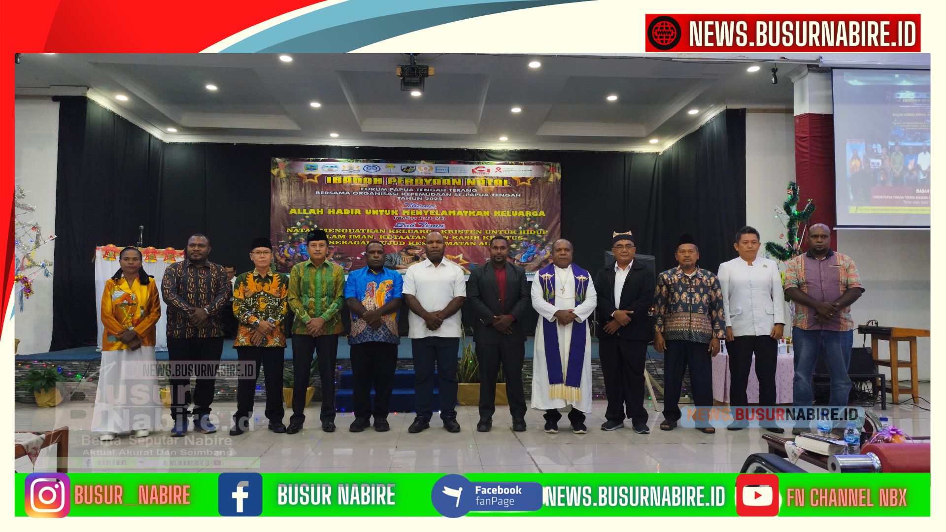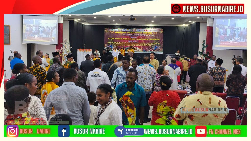 NEWS.BUSURNABIRE.ID | Nabire ,Papua Tengah ; Forum Papua Terang bersama organisasi kepemudaan se-Papua Tengah menggelar Ibadah Perayaan Natal Tahun 2025 yang berlangsung khidmat dan penuh makna di Aula RRI Nabire, Rabu (17/12/2025). Perayaan Natal ini mengusung tema “Allah Hadir untuk Menyelamatkan Keluarga” yang diambil dari Matius 1:21–24.
