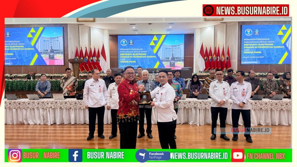 NEWS.BUSURNABIRE.ID – Depok, Wakil Bupati Kabupaten Nabire, H. Burhanuddin Pawennari, menghadiri sekaligus mengikuti kegiatan Penandatanganan Perjanjian Kerja Sama Sertifikat Elektronik bersama 18 Pemerintah Daerah yang dirangkaikan dengan Diskusi Panel, bertempat di Depok, Jawa Barat, Kamis (12/2/2026).