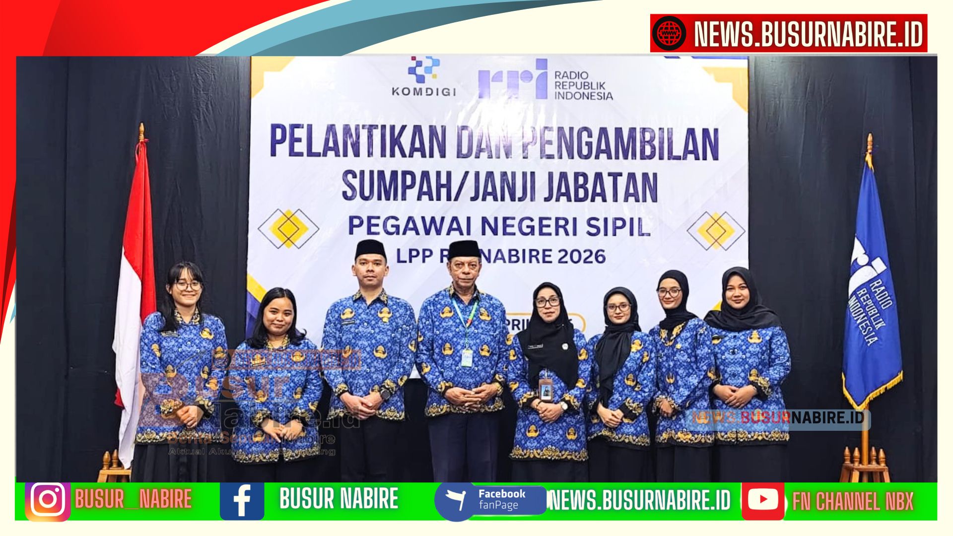NEWS.BUSURNABIRE.ID – Nabire: Papua Tengah | Lembaga Penyiaran Publik Radio Republik Indonesia (RRI) mencatat sejarah baru dengan melantik 783 Pegawai Negeri Sipil (PNS) dalam momentum nasional yang digelar secara luring dan daring, Rabu (1/4/2026).