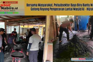 Bersama Masyarakat, Polsubsektor Baya Biru Bantu Warga Gotong Royong Pengecoran Lantai Masjid Al – Hijrah