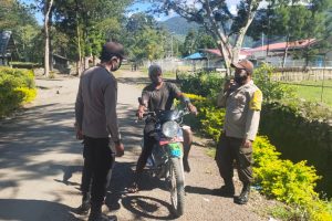 Polsek Bokondini Turun ke Jalan Ingatkan Warga Untuk Disiplin Berlalu Lintas Dan Prokes